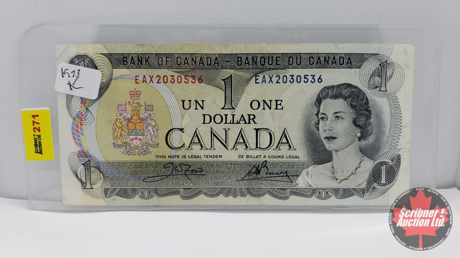 Canada $1 Bill 1973 : Crow/Bouey #EAX2030536 (See Pics for Signatures/Serial Numbers)