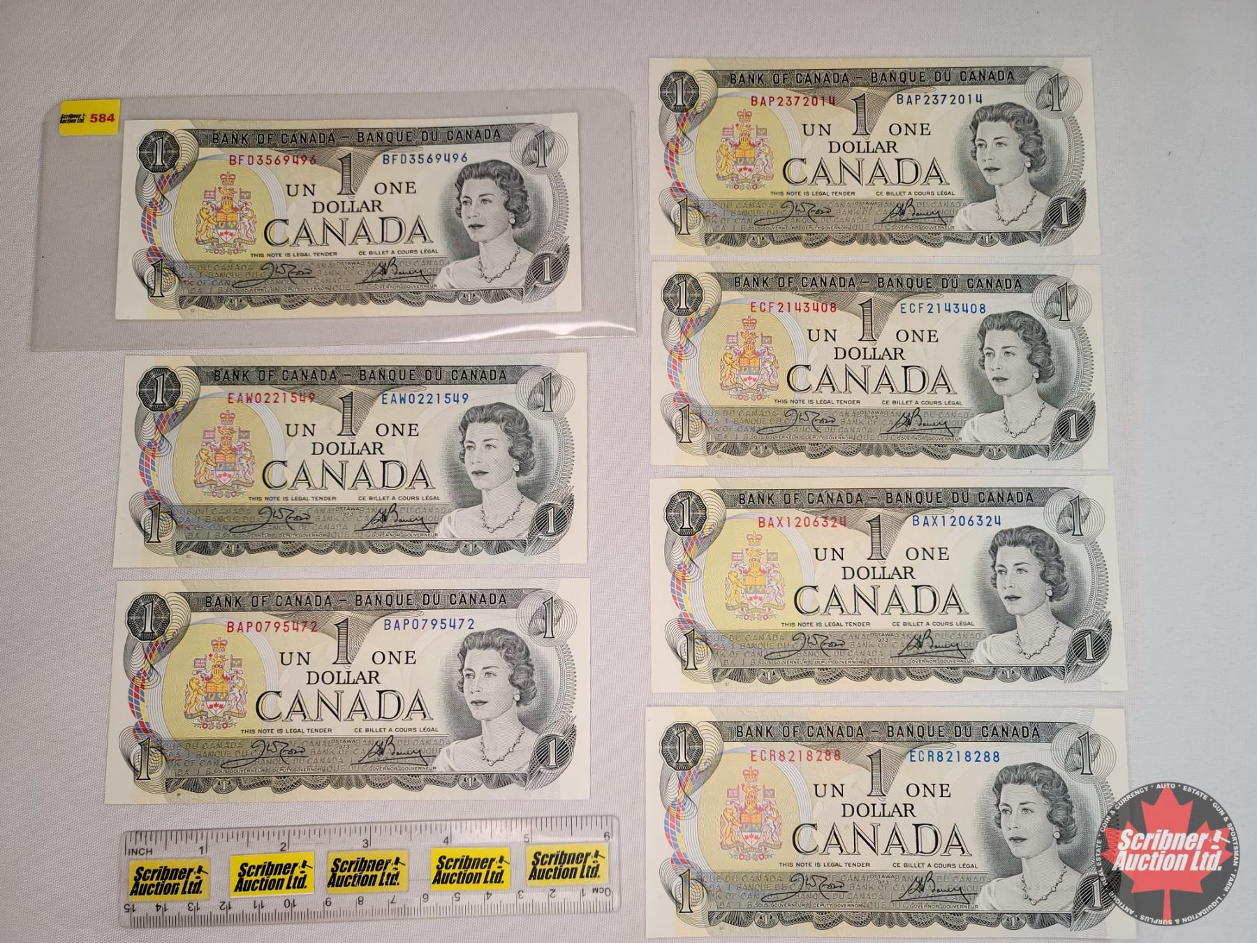 Canada $1 Bills 1973 (7 UNC) : Crow/Bouey (See Pics for Varieties, Conditions, Serial Numbers & Signatures)