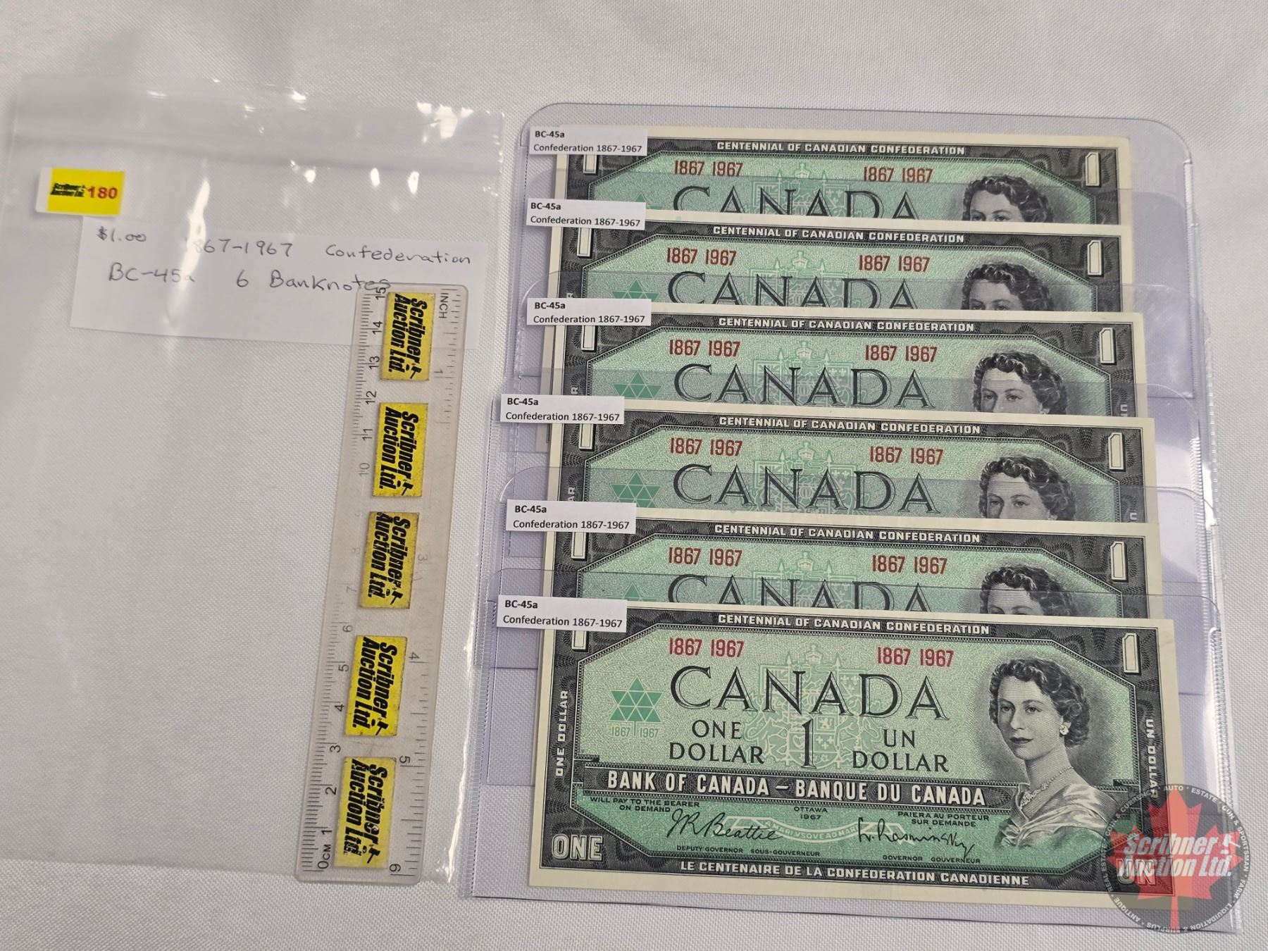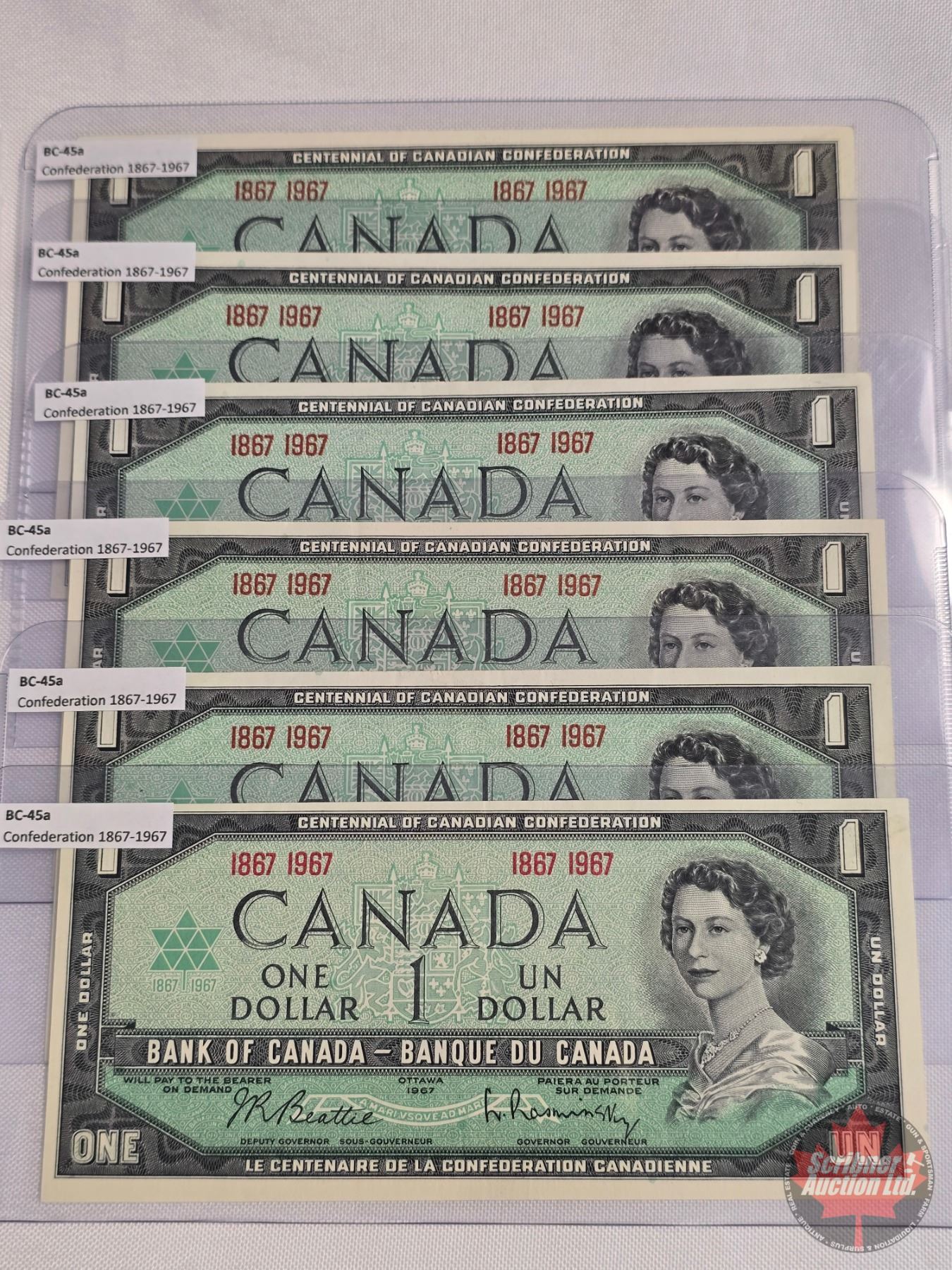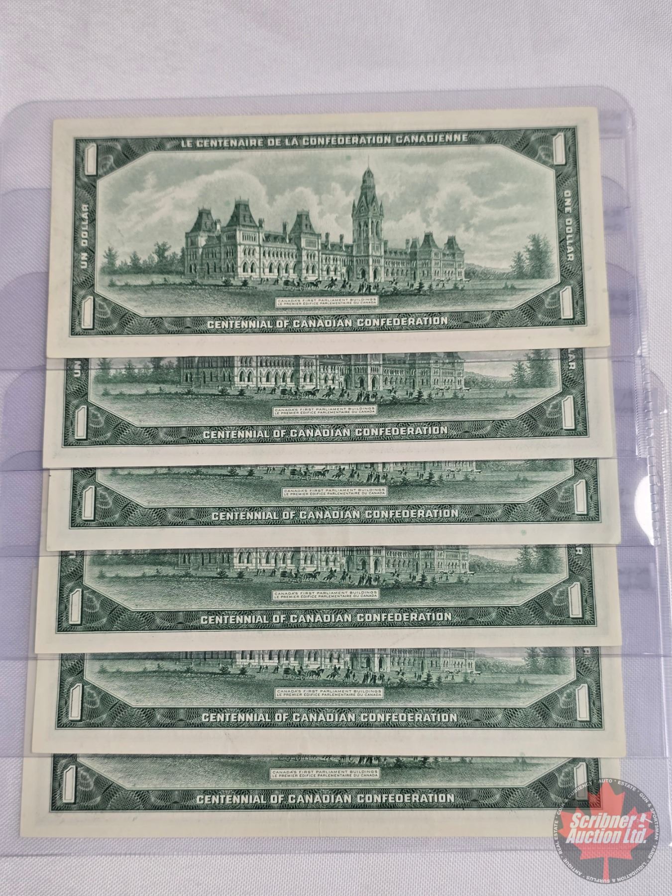 Canada $1 Bills Centennial 1967 (6) : Beattie/Rasminsky # 1867 1967