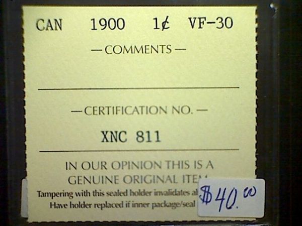 Canada - 1 Cent - 1900 - ICCS - VF-30