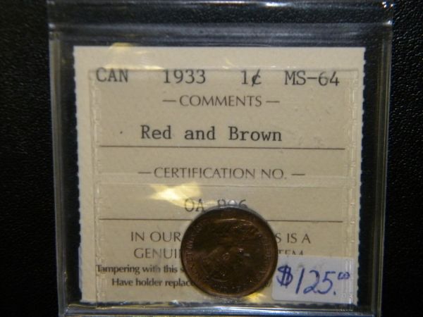 Canada - 1 Cent - 1933 - Red & Brown - ICCS - MS-64