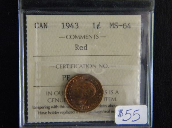 Canada - 1 Cent - 1943 - RED - ICCS - MS-64