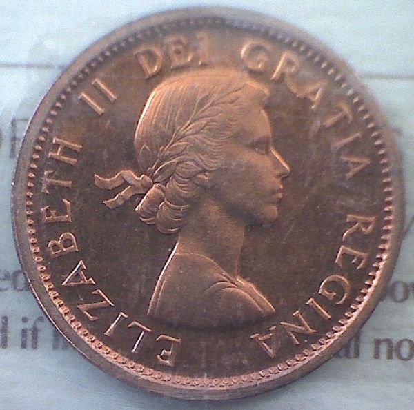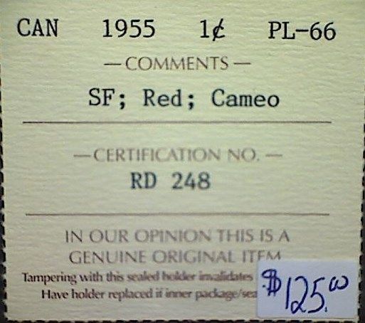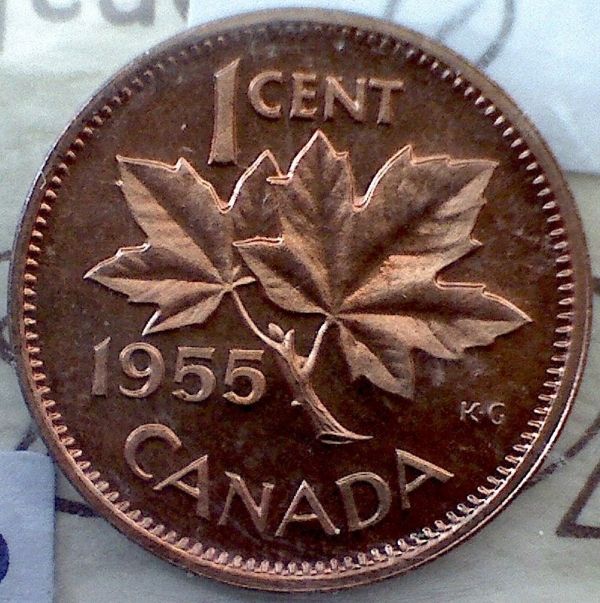 Canada - 1 Cent - 1955 - SF; Red; Cameo - ICCS - PL-66