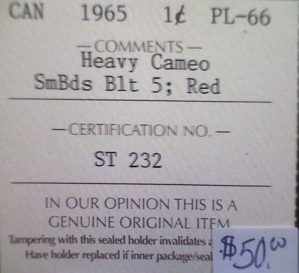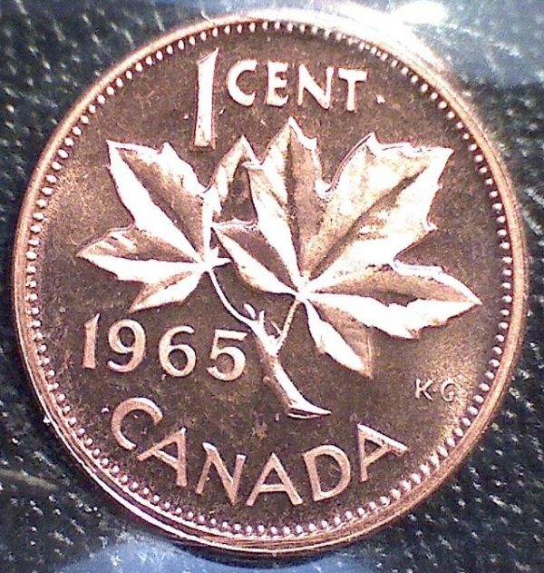 Canada - 1 Cent - 1965 - Heavy Cameo - SmBds Blt 5; Red - ICCS - PL-66