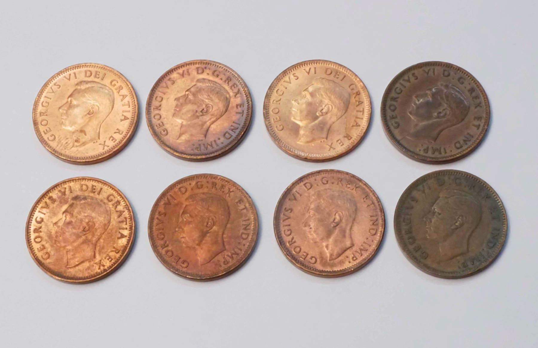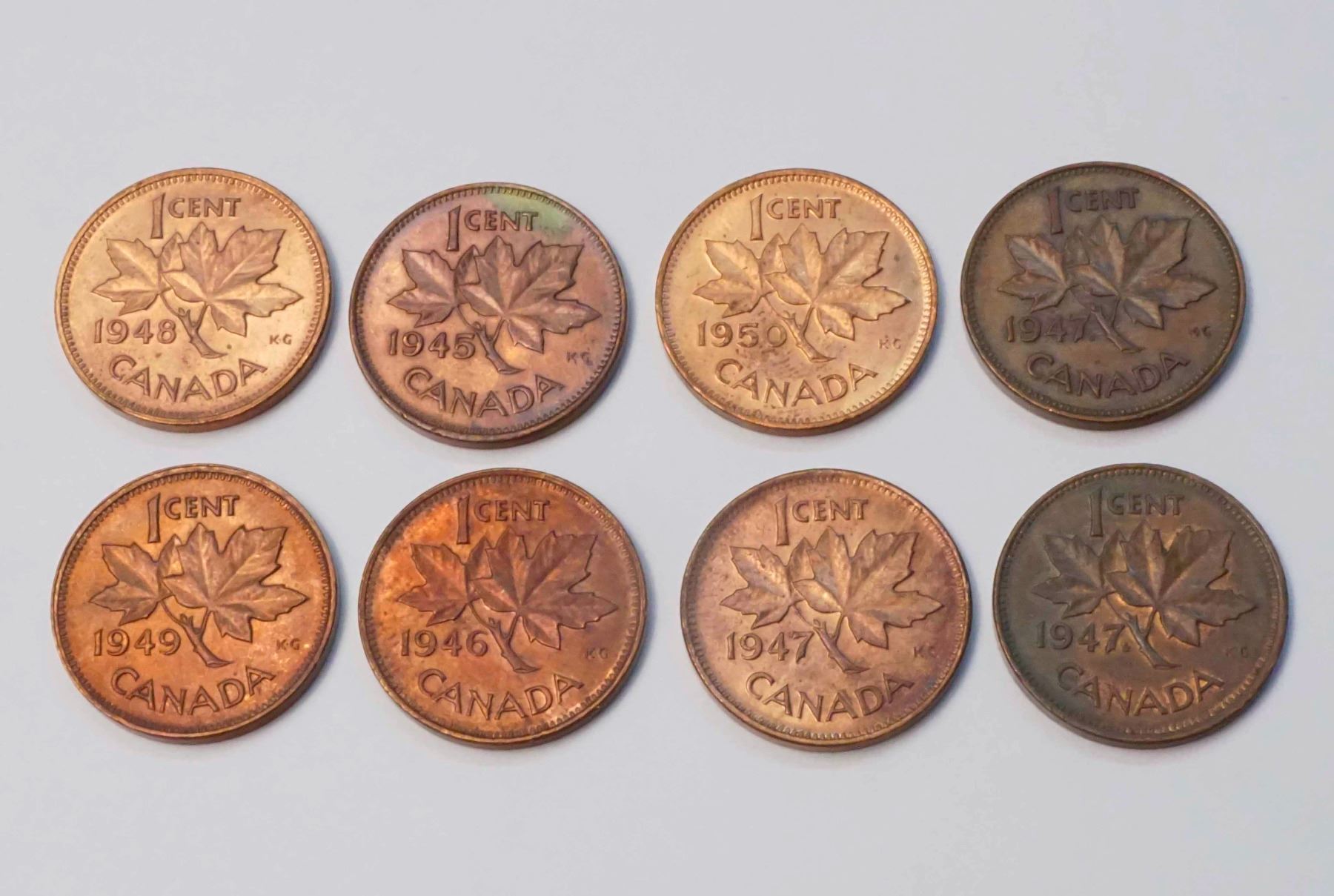 Canada 1 cent 8 Pcs 1945 - 1950 Mostly Ch. UNC, two are EF - See Description