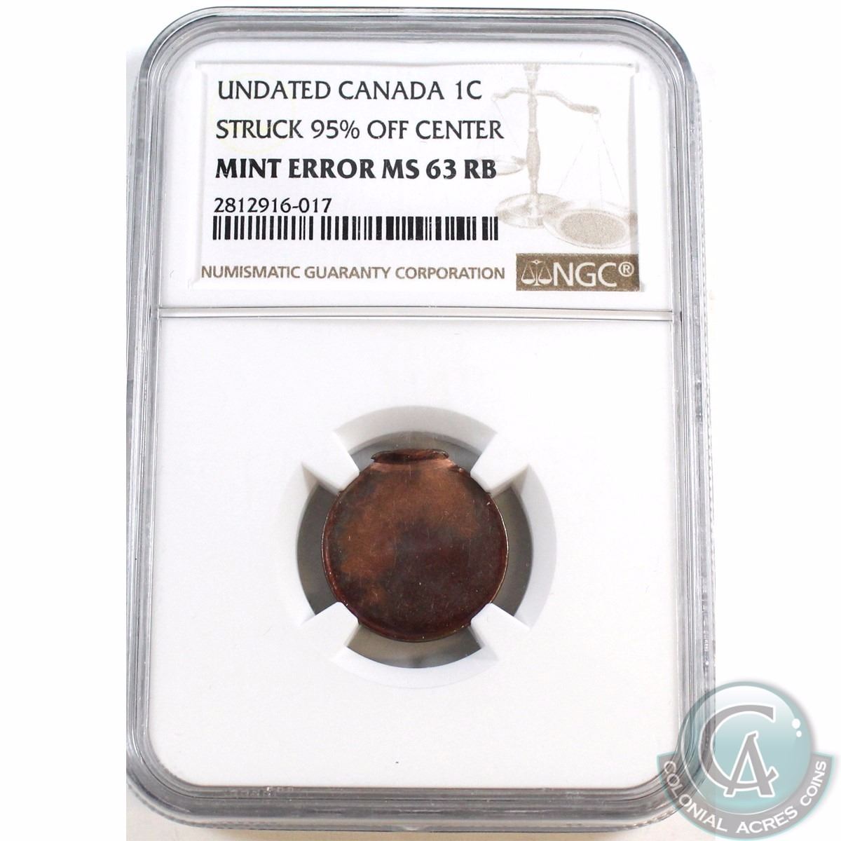 Canada 1-cent Undated Struck 95% Off Center Mint Error NGC Certified MS-63 Red Brown