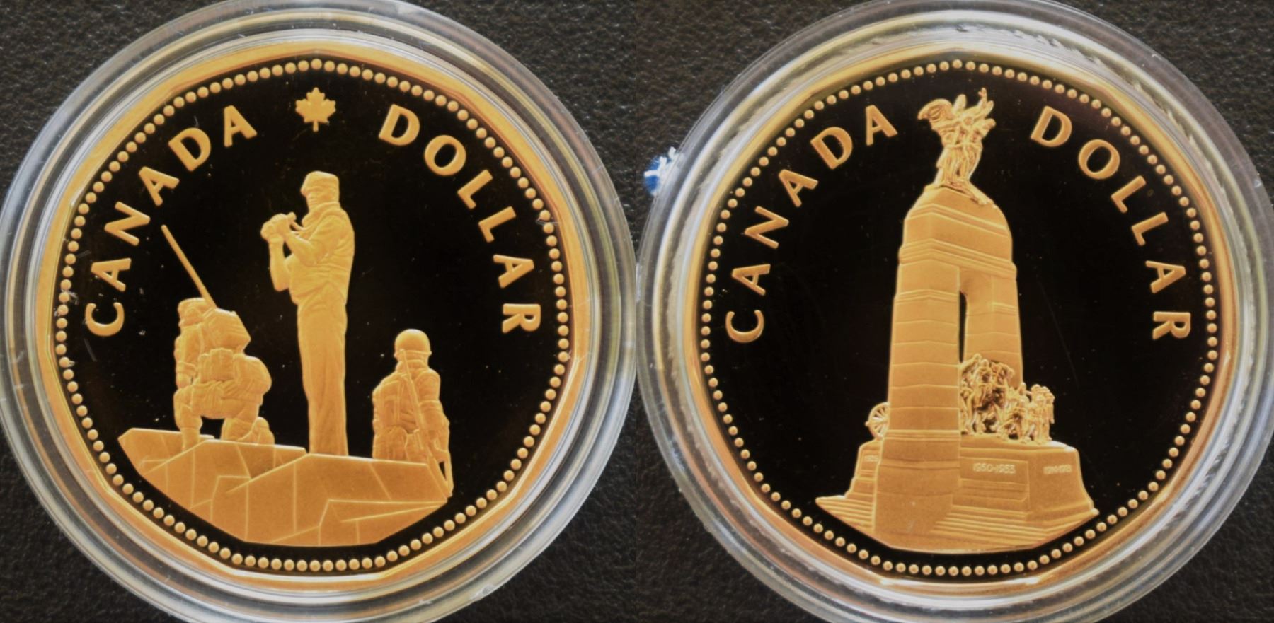 Canada, 1$ x 2 Cased 1994 and 1995 "Remembrance Day" and "Peacekeeping" Nickel-Bronze Proof Ultra Heavy Cameo, both in Original Mint Case