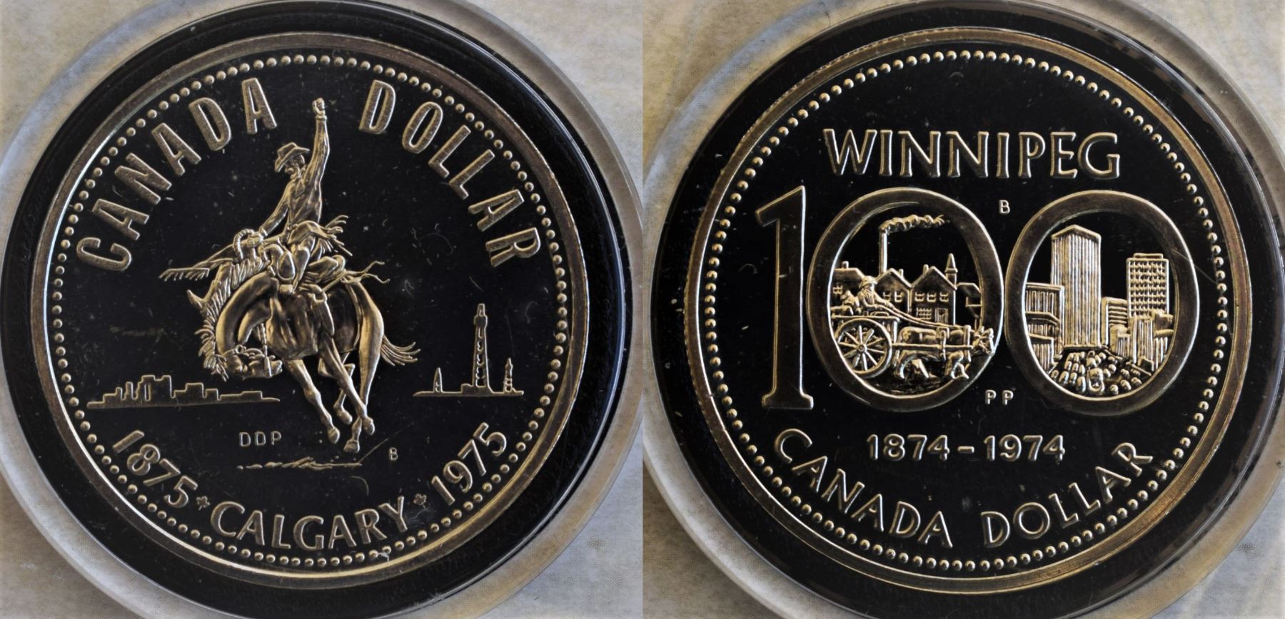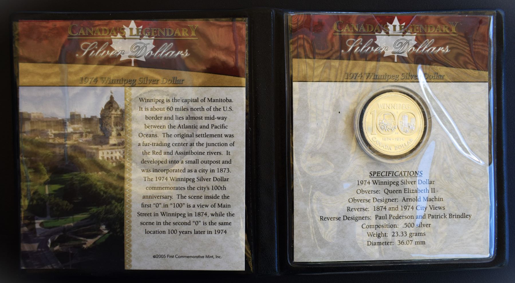 Canada, 1$ x 2 "First Commemorative Mint" Folders, 1974 and 1975 Proof Silver Coins (2)