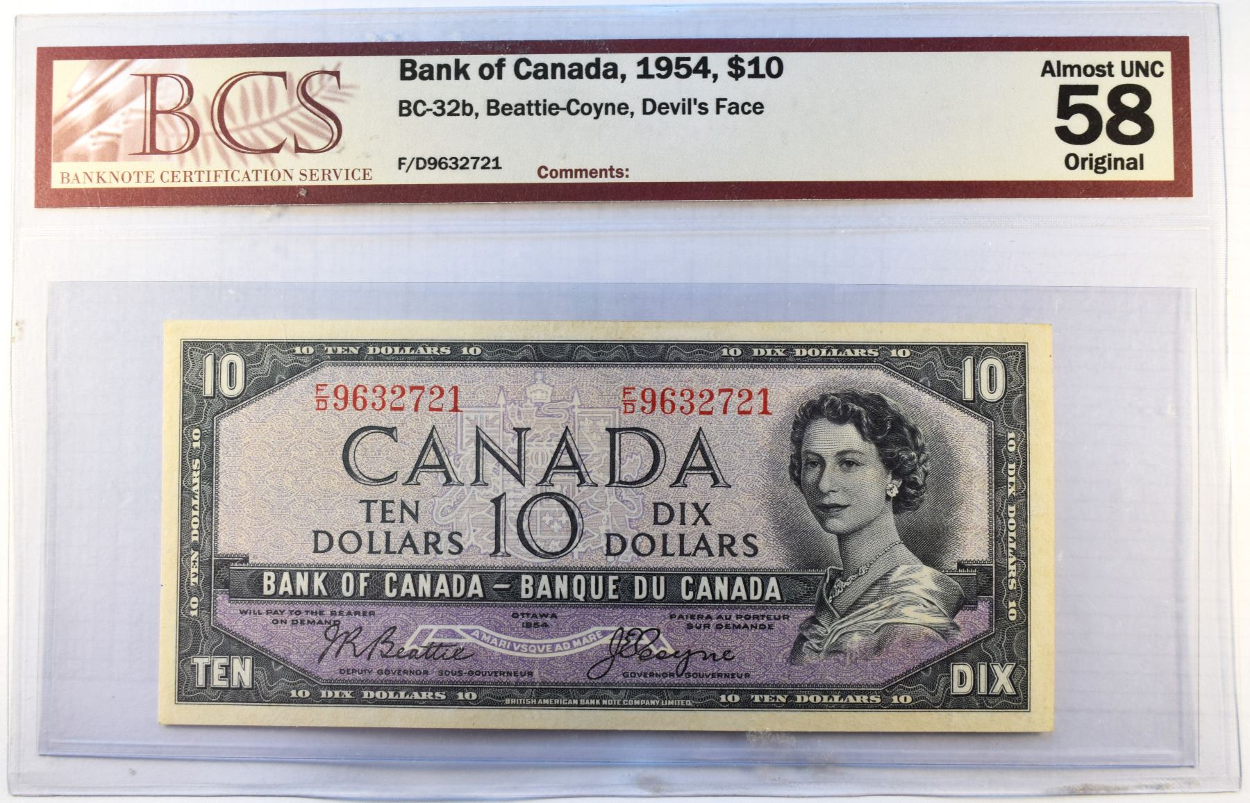 Canada, 10$ 1954 "Devil's Face" QEII BC-32b Choice AUNC-58 Certified BCS