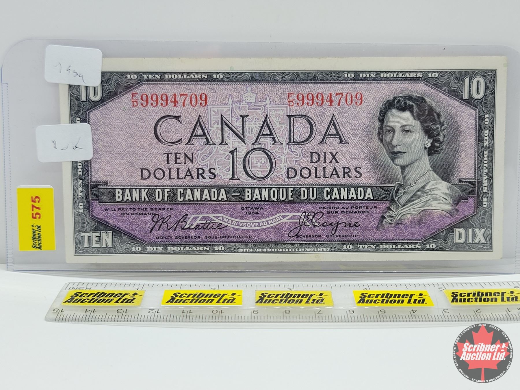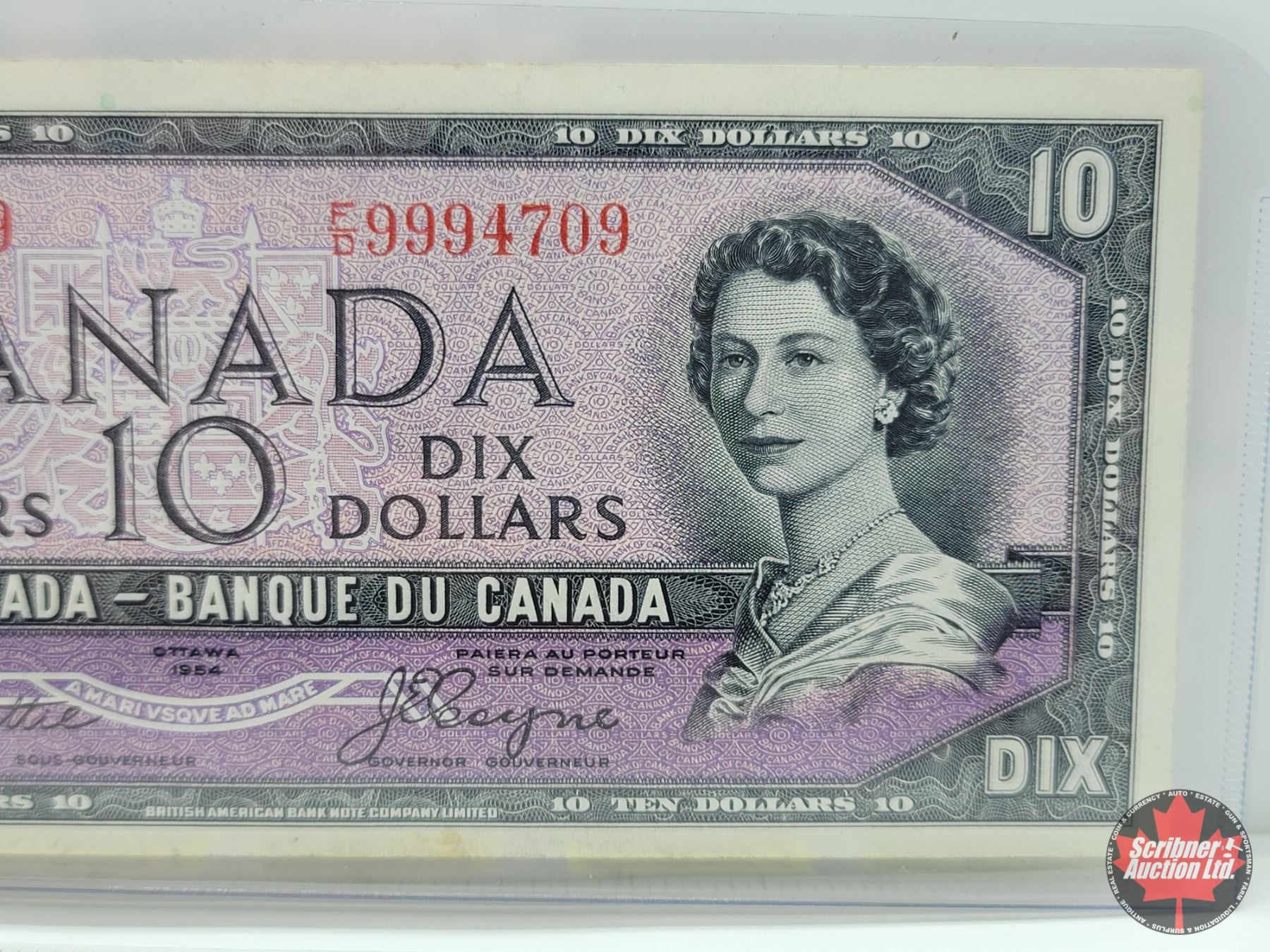 Canada $10 Bill 1954DF "Devil's Face" : Beattie/Coyne #FD9994709 (See Pics for Varieties, Conditions, Serial Numbers & Signatures)