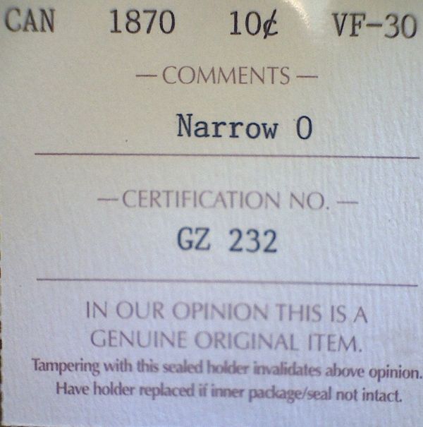 Canada - 10 Cents - 1870 - Narrow 0 - ICCS - VF-30