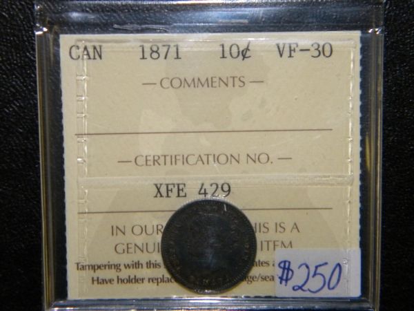 If there are no bids before the auction begins, lots will start at the reserve bid. 75% of all items in this auction will have reserve bids of 50% Canadian Coin News Trends price. Advances are at the discretion of the auctioneer. In the event of identical bids, pre-viewing bids, phone or e-mail bids will take priority. We reserve the right to withdraw any lot prior to the sale. Lots are sold to the highest bidder at timed bids indicated on our auction page through iCollector. No lots will be broken. This is not a Live Public Auction and hence there is no public forum. The auction will be conducted via the internet only, from our physical location at 230 Main Street, Fredericton, New Brunswick, E3A 1C9 on the May 18th, 2013.
