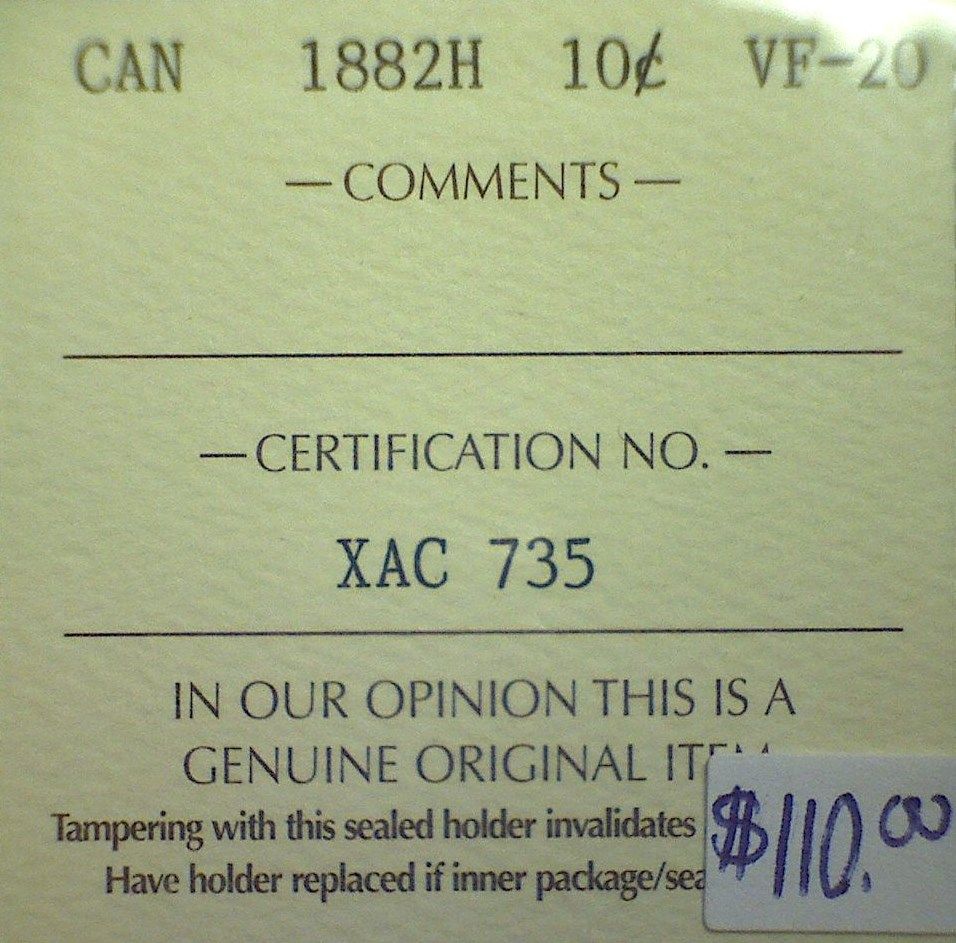 Canada - 10 Cents - 1882H - ICCS - VF-20