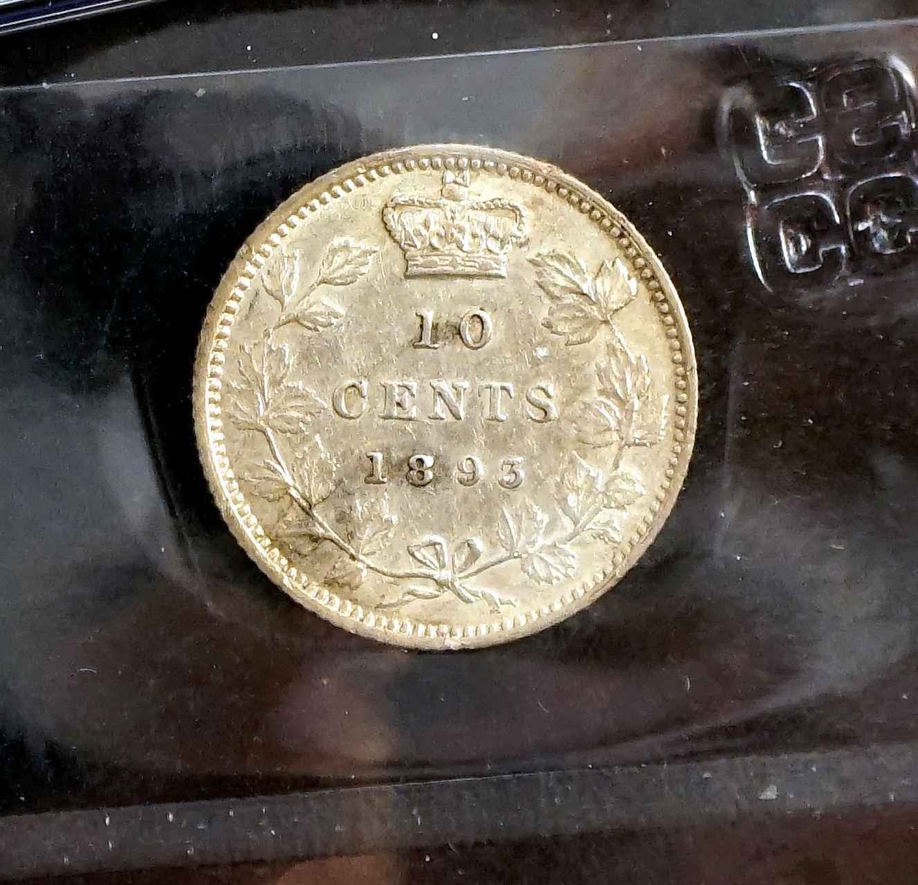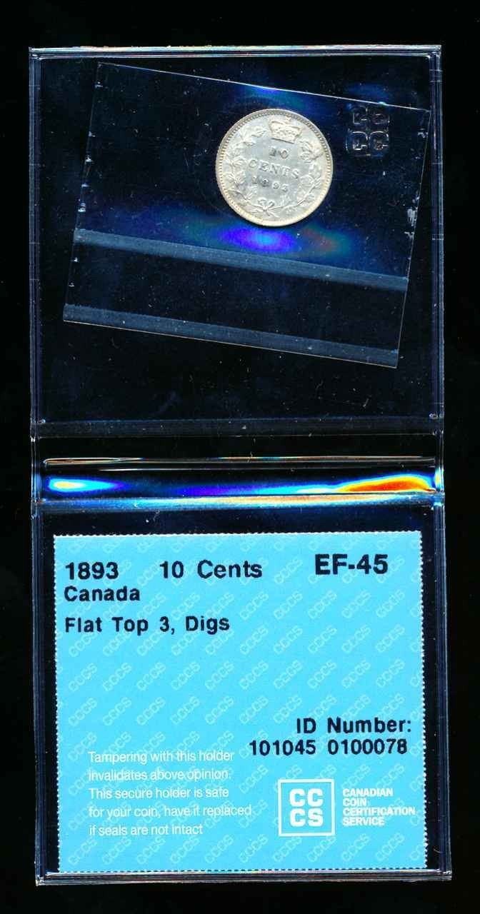 Canada 10 Cents 1893 Flat Top 3 CCCS Extra Fine