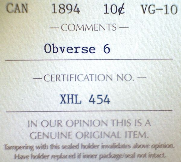 Canada - 10 Cents - 1894 - Obv #6 - ICCS - VG-10