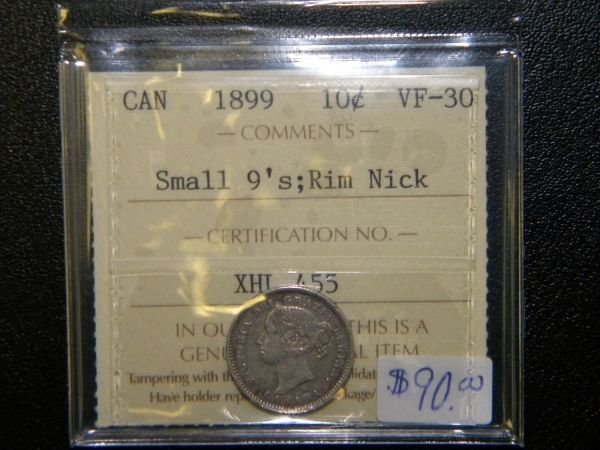 Canada - 10 Cents - 1899 - Small 9's; Rim Nick - ICCS - VF-30