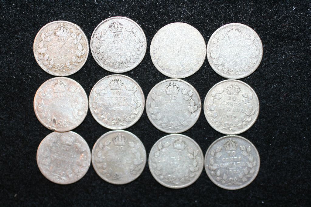 Canada 10 Cents, Various Dates & Conditions (Older), Lot of 12
