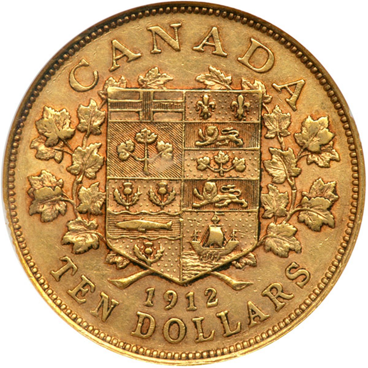 Canada. 10 Dollars, 1912. Fr-3; KM-27. Weight 0.4837 ounce. George V. NGC graded EF-45.