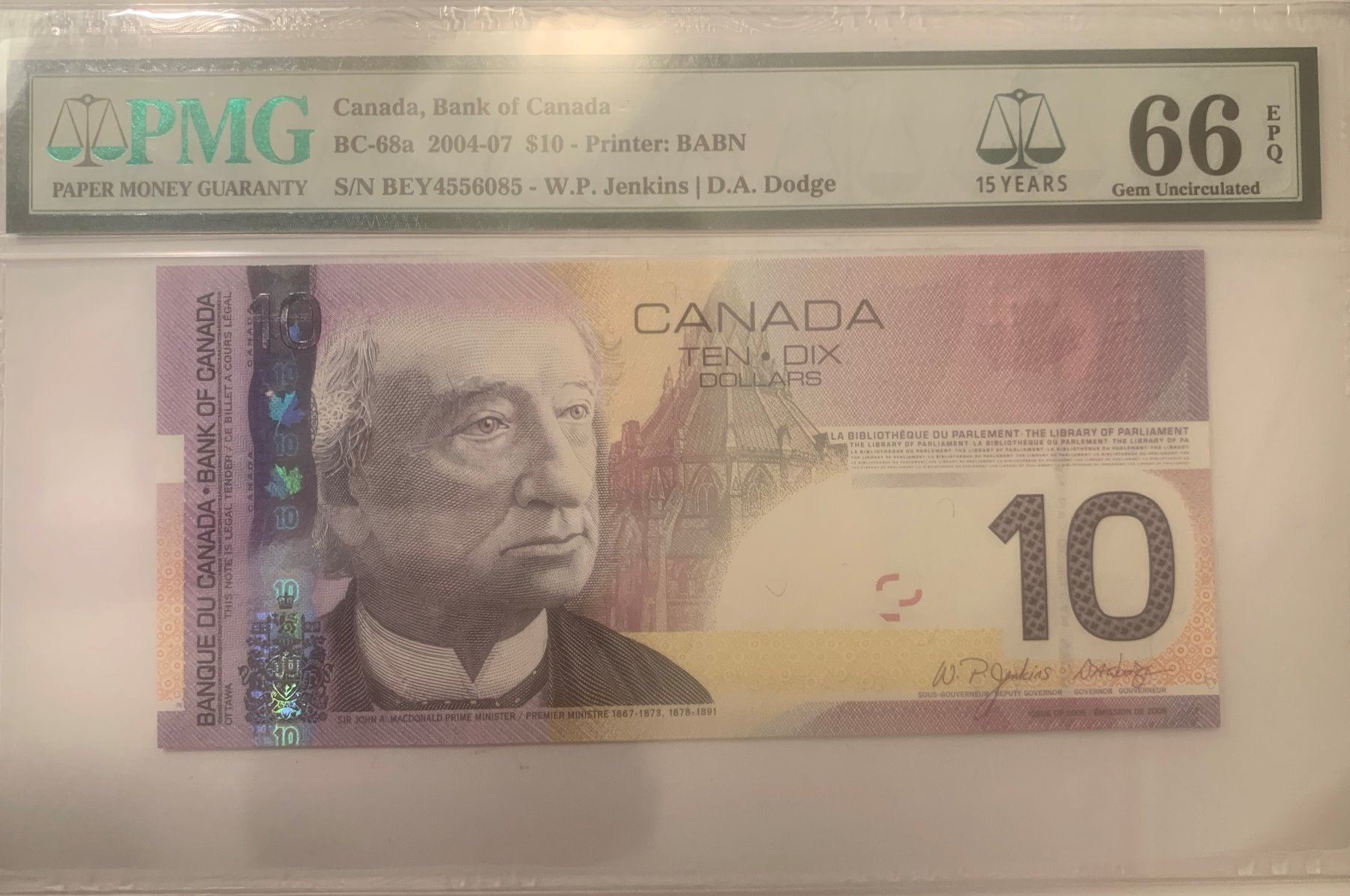 Canada 10 Dollars 2004 / 2007 $10 P 102A Jenkins Dodge 15 th Label GEM UNC PMG 66 EPQ