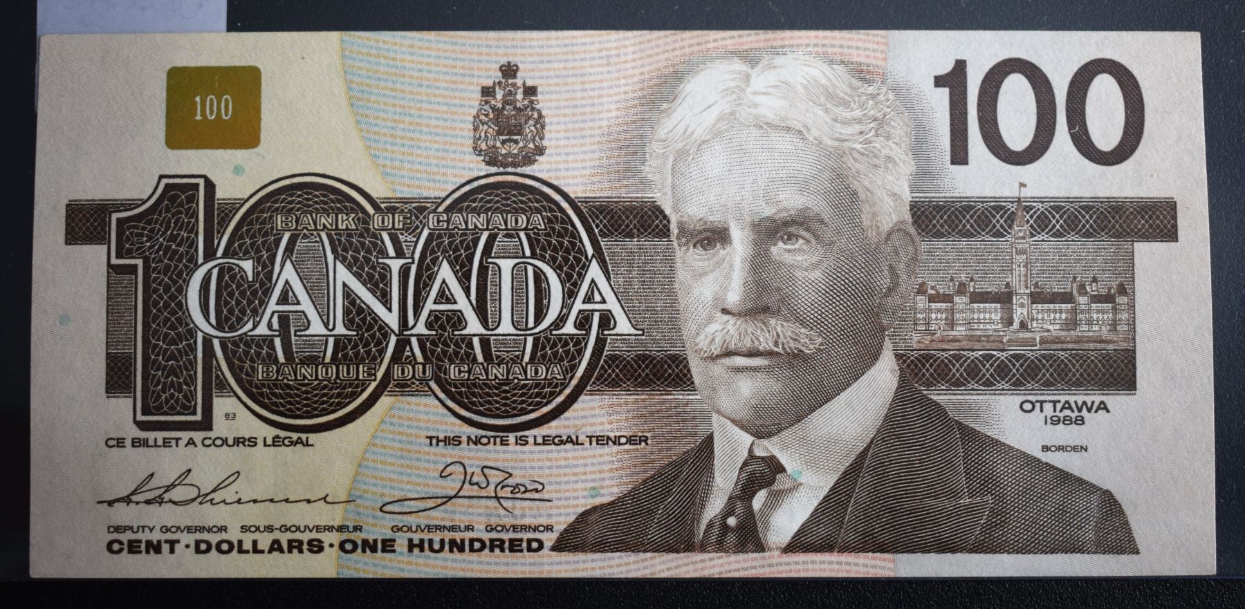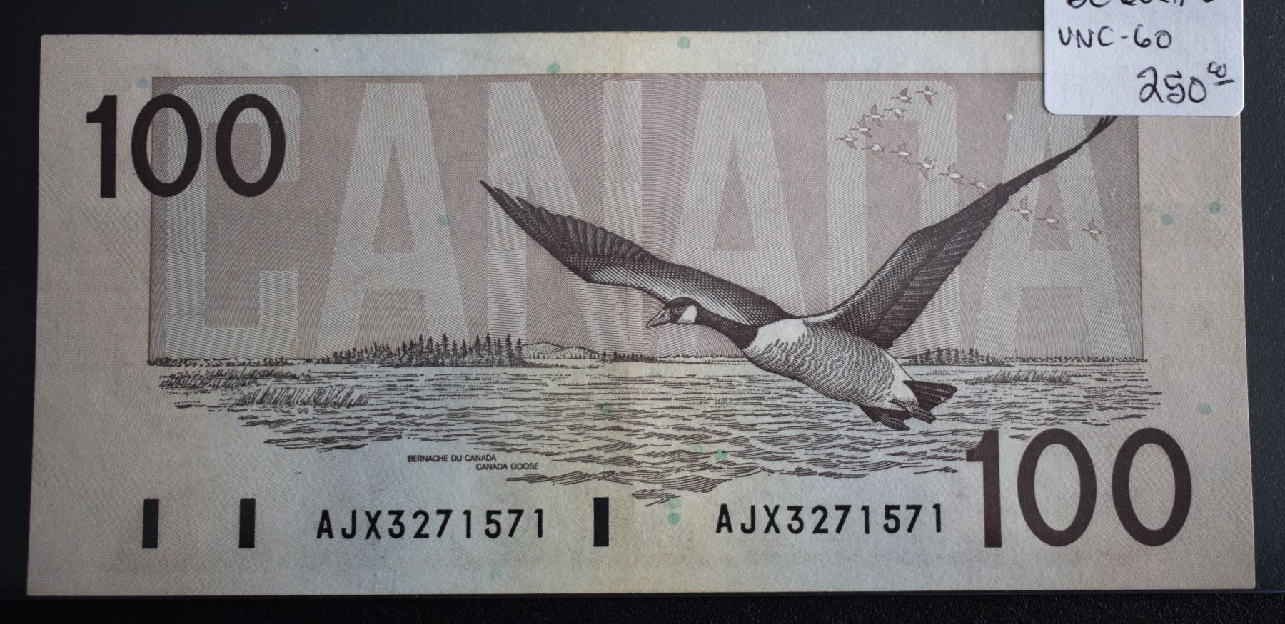 Canada, 100$ 1988 "Birds Series" BC-60aA-i Serial # AJX3271571 "Replacement"