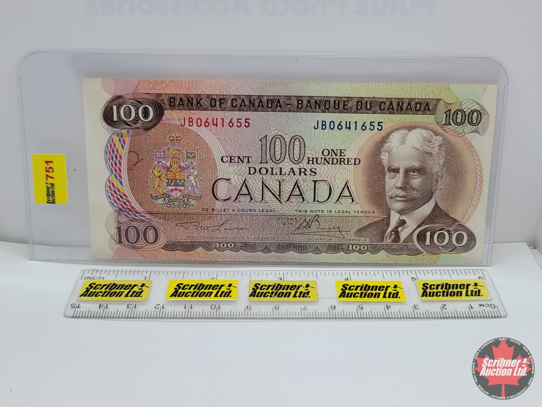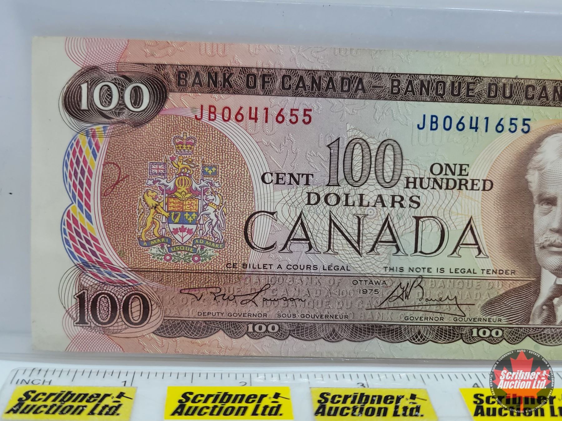 Canada $100 Bill 1975 : Lawson/Bouey #JB0641655 (See Pics for Varieties, Conditions, Serial Numbers & Signatures)