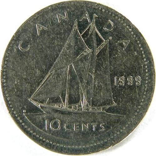 Canada Ten Cents 1974 Struck on a Smaller, non-Magnetic Planchet, 17.3mm, 1.39 grams, AU