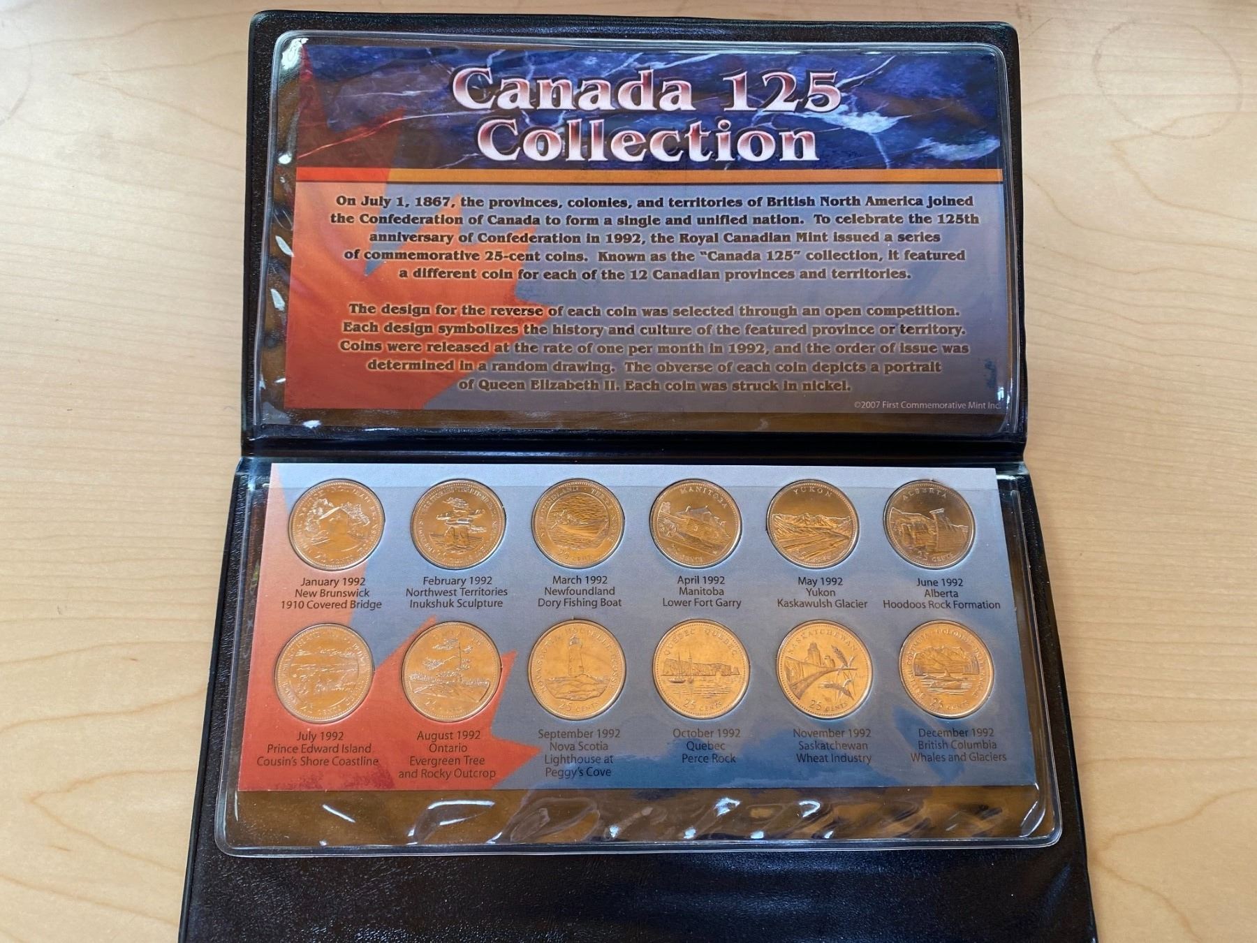 Canada 125 Collection. Complete collection of 12 1992 provincial & territorial 25 cents that mark the 125th Anniversary of Canadian Confederation.