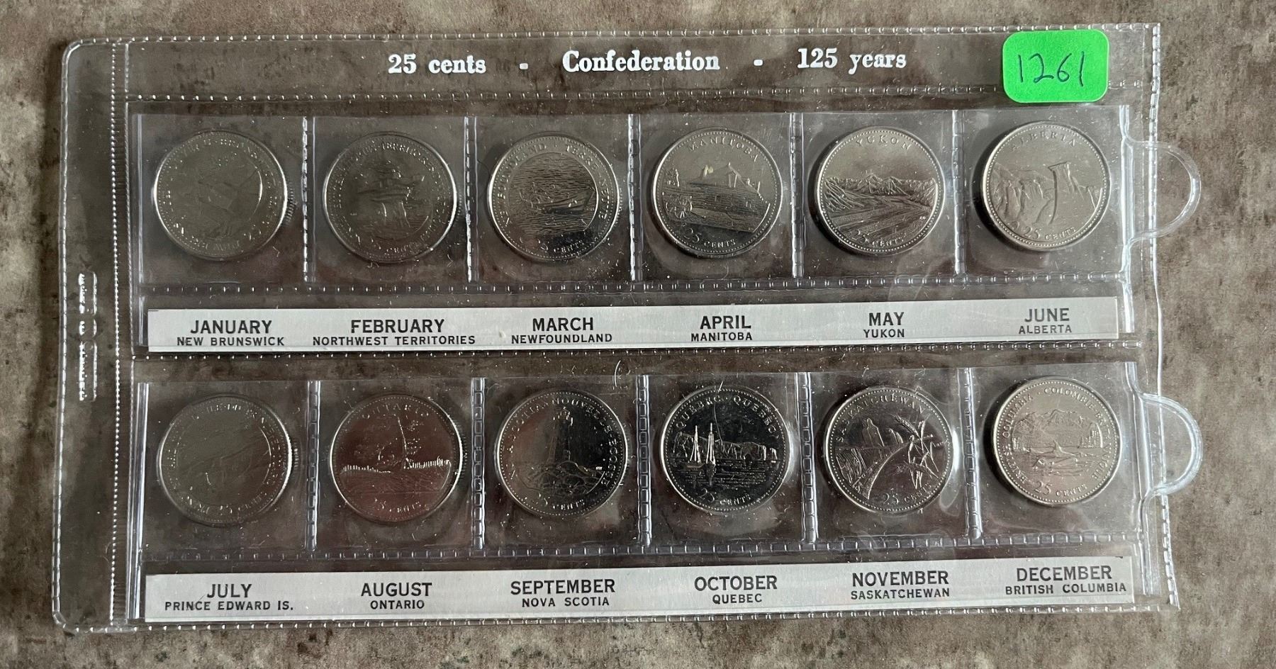Canada 125 Provincial & Territorial Set of 12 quarters from 1992 in commemorative pouch sleeve.