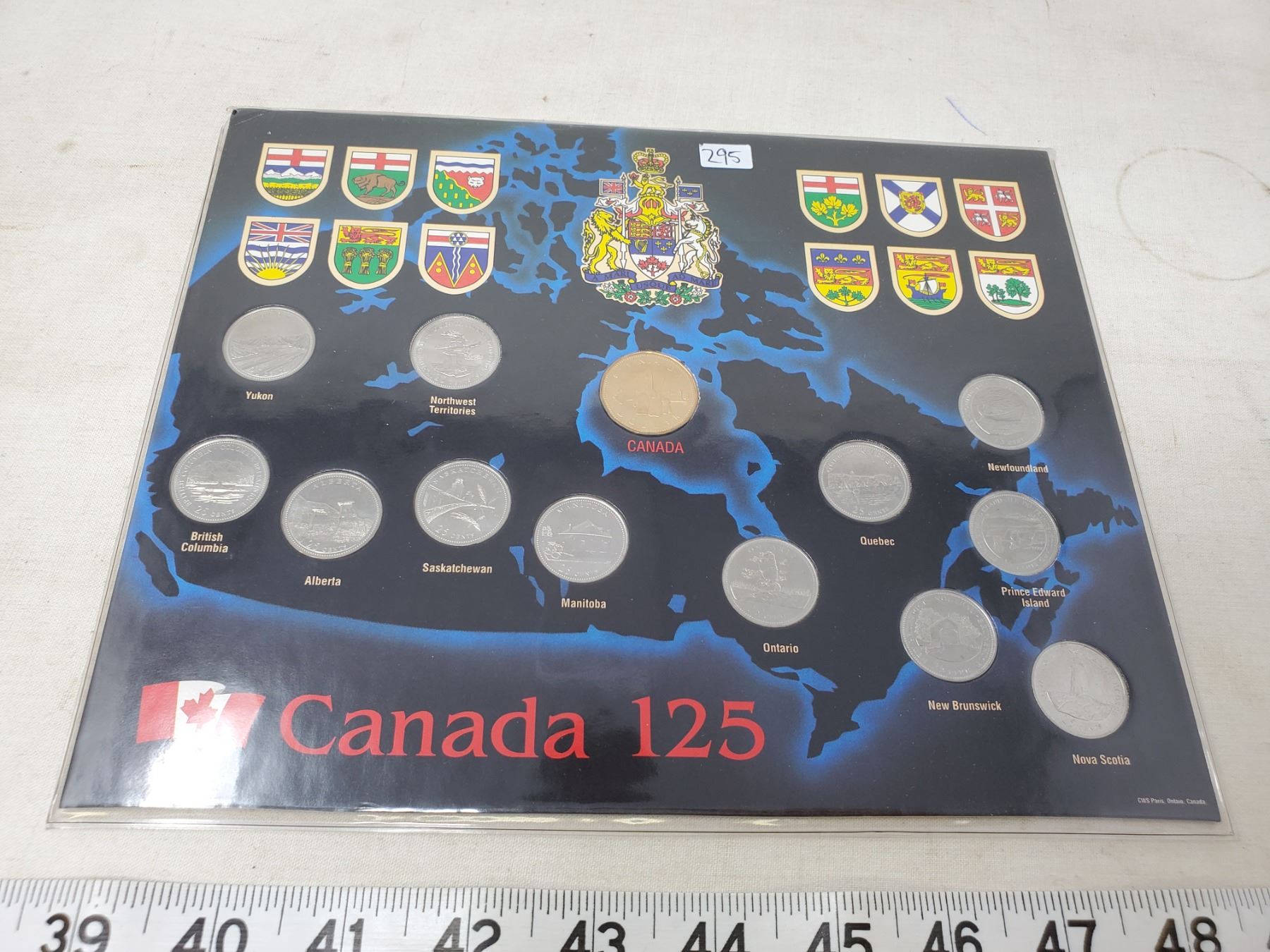 Canada 125 Quarter set in a small Blue Map Holder c/w Looney,1-Canada 125 commemorative set