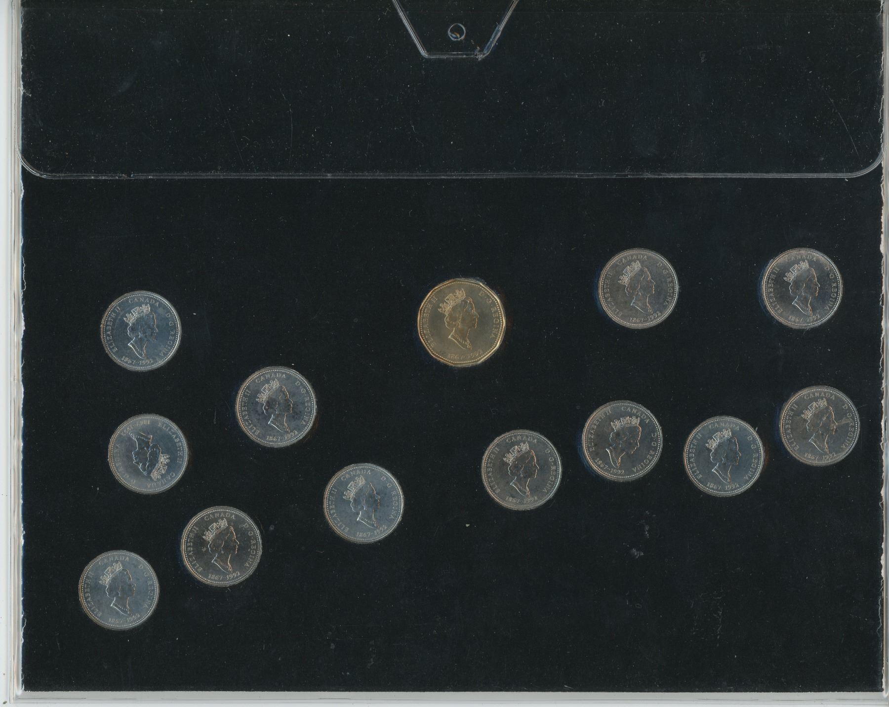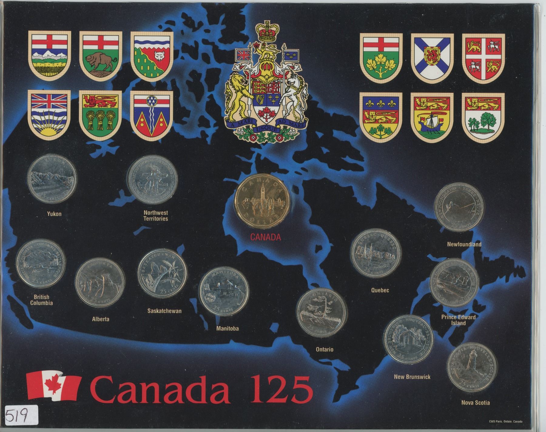 Canada 125 Quarter set in a small Blue Map Holder c/w Looney,1-Canada 125 commemorative set