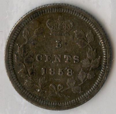 Canada 1858 5 Cent ICCS Graded F-15 Large Date
