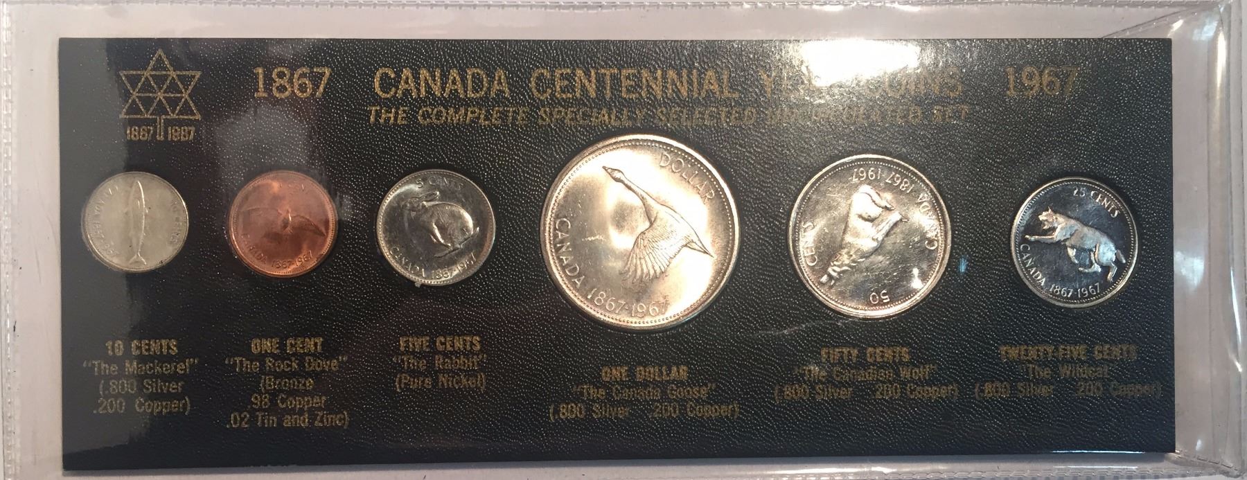 Canada 1867 - 1967 Centennial Commemorative Set in black card.