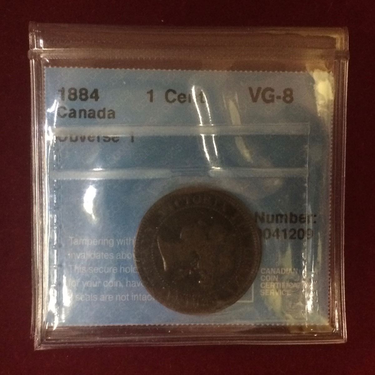 Canada 1884 1 cent Obverse 1 CCCS graded VG-8