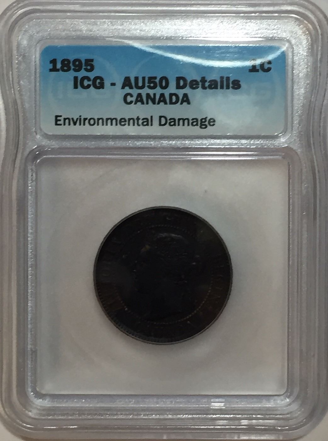 Canada 1895 Large Cent ICG AU50 Env. Damage