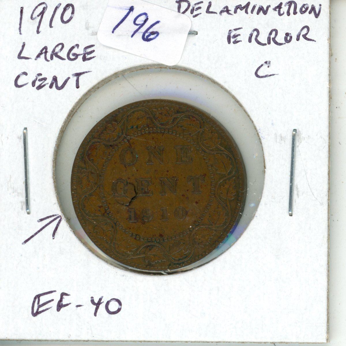 Canada. 1910 Large Cent Reverse Delamination Error. EF-40. Scarce.