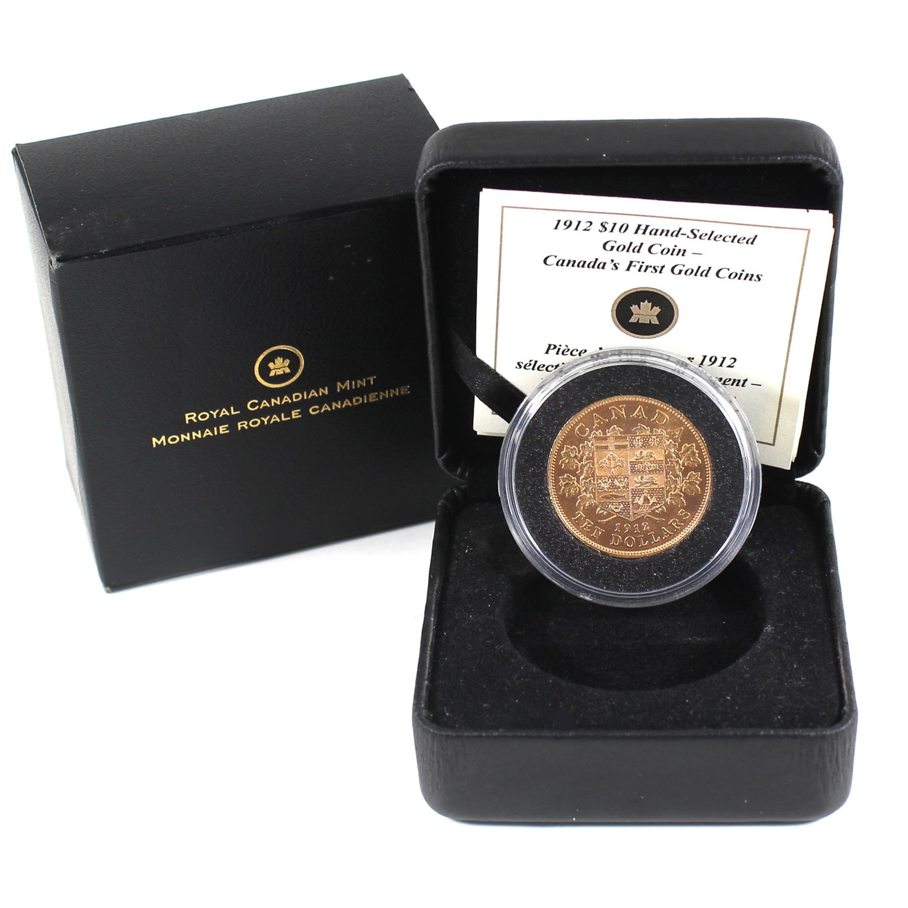 Canada 1912 $10 Hand-Selected - Canada's First Gold Coins issued by the RCM in presentation box. SCARCE! (0.484 oz pure) Beauty box contains light wear.