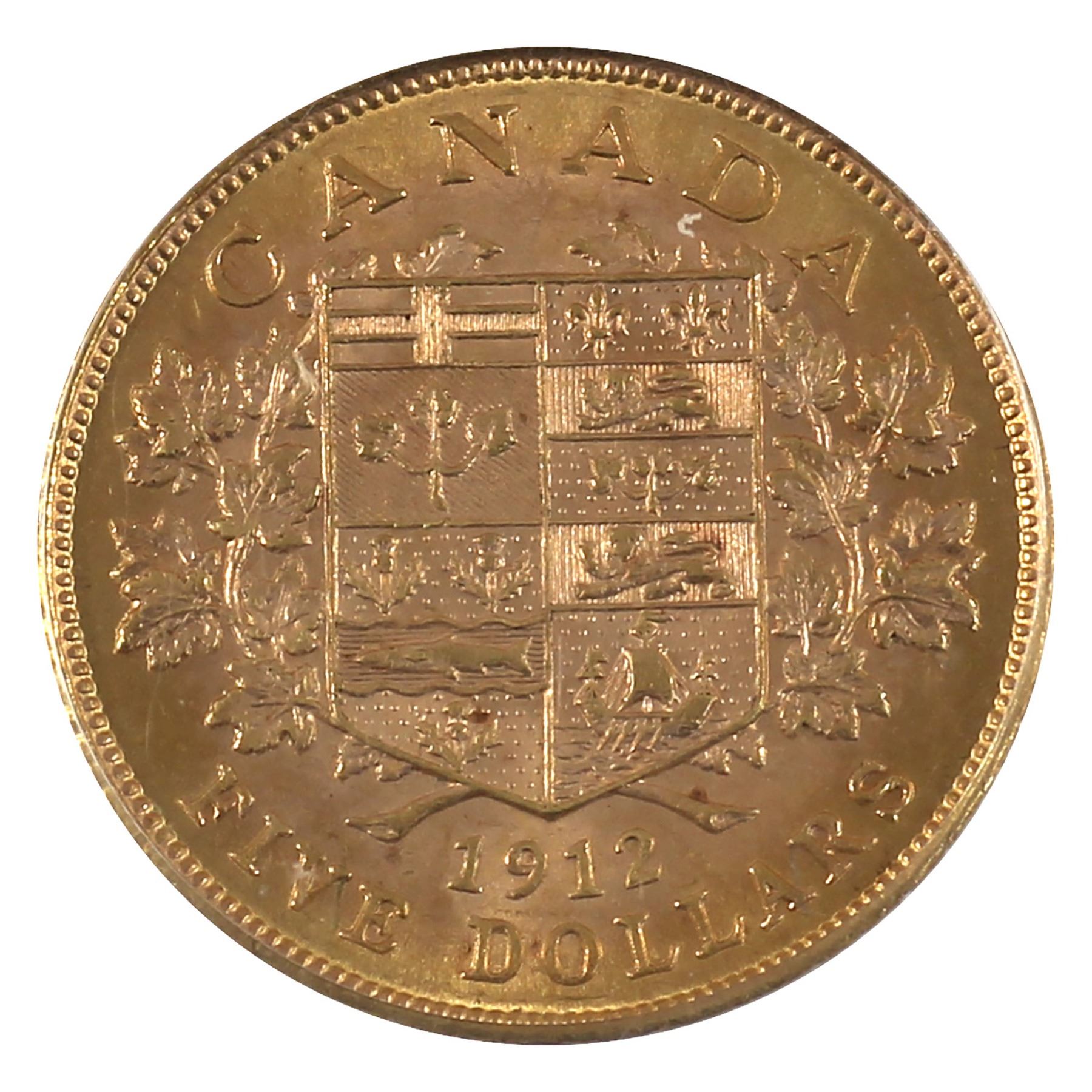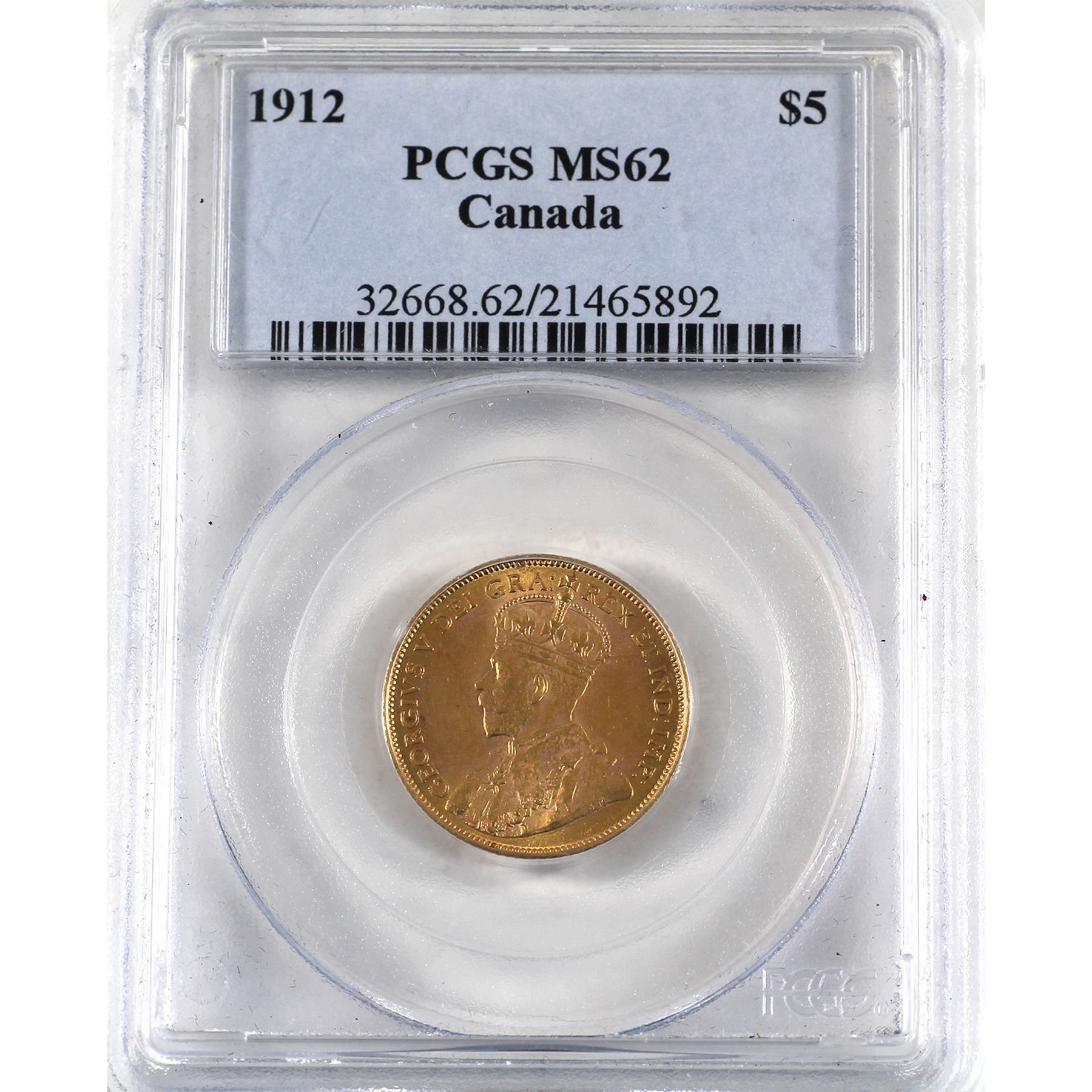 Canada 1912 $5 Gold PCGS Certified MS-62. A nice first year issue $5 Gold coin (.900 Fine and contains 0.242 oz. Pure)