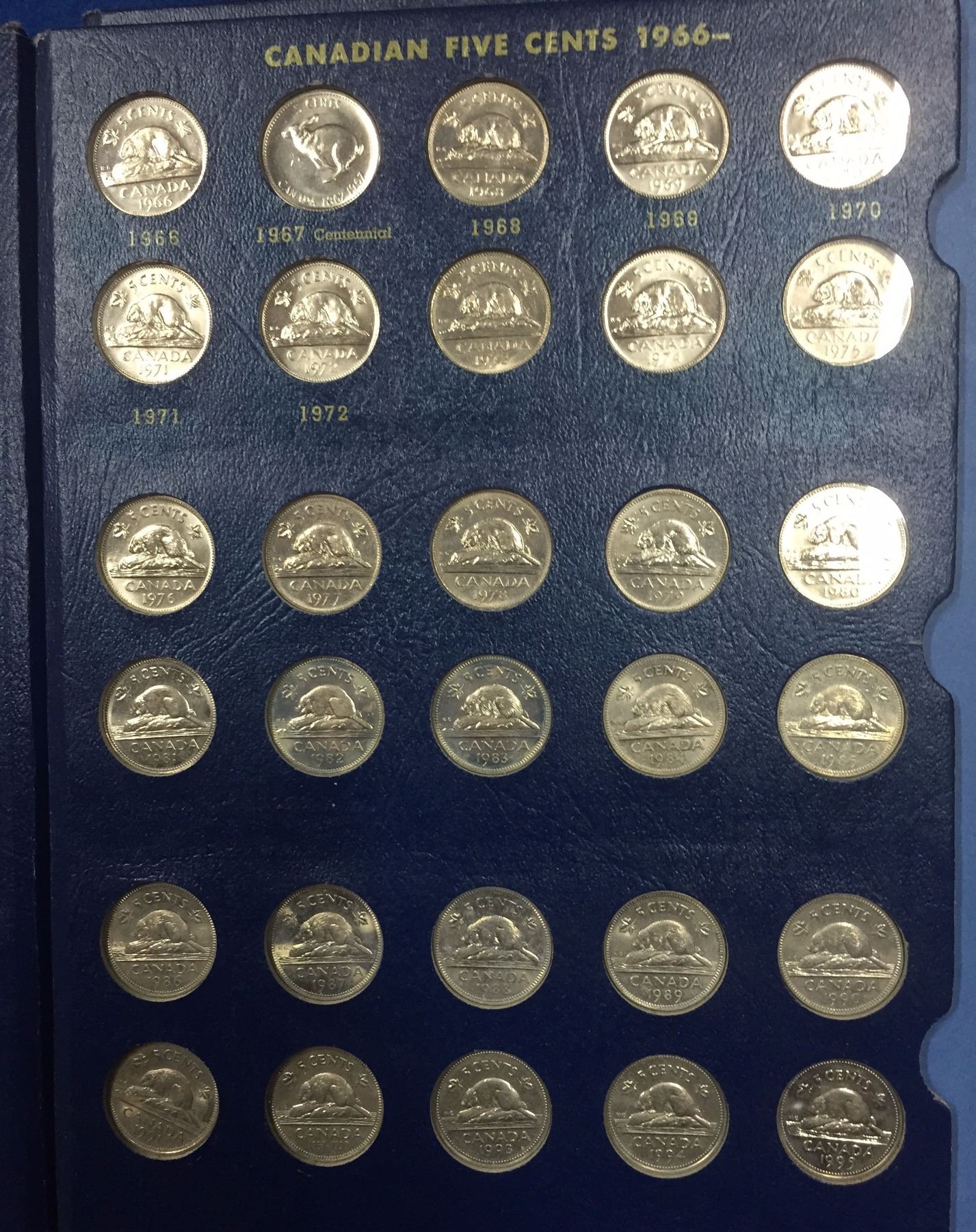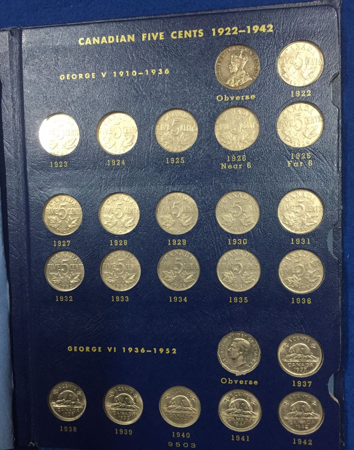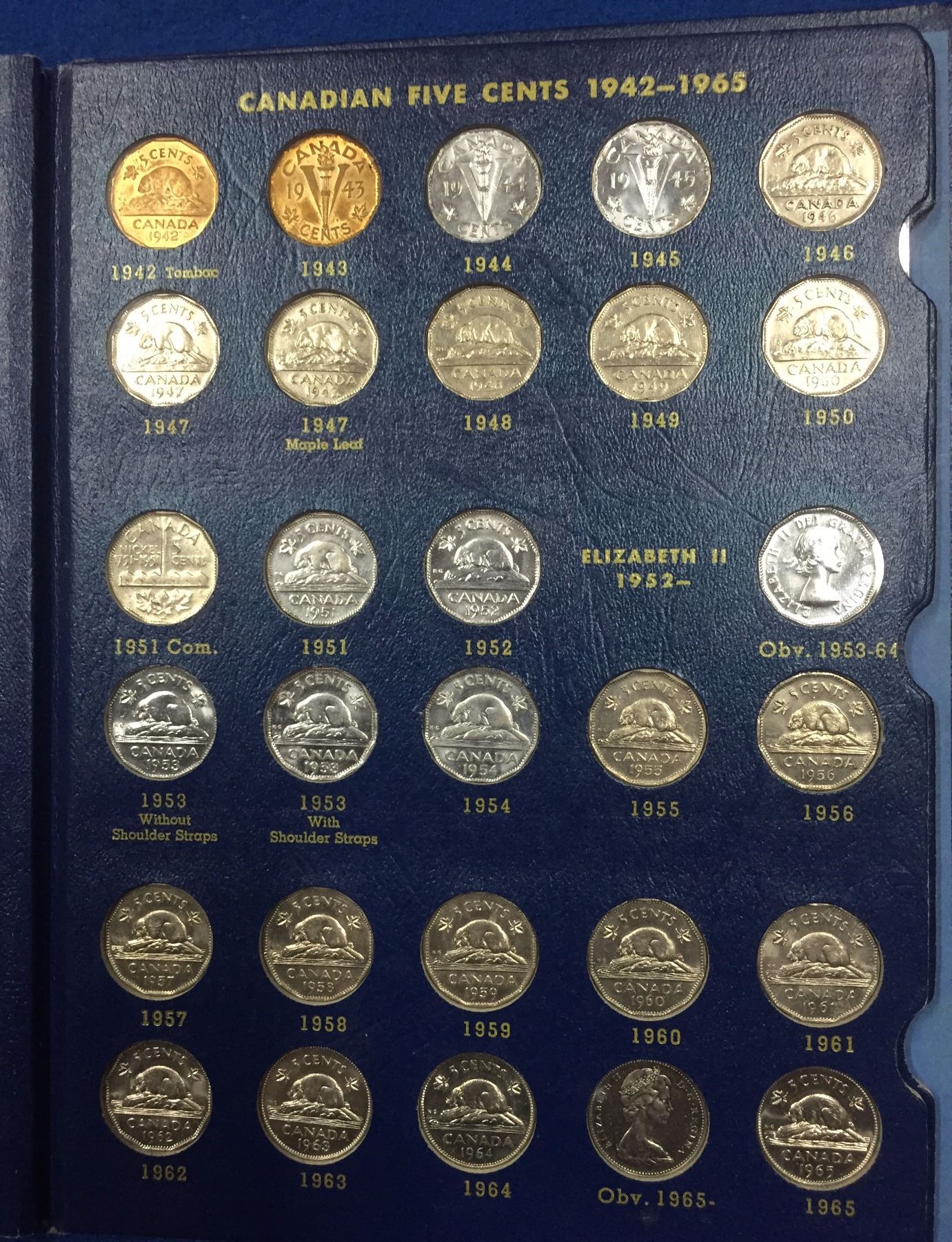 Canada 1922 to 1965 Complete Nickel Collection in Whiteman Folder. Includes 1925, and 1926 Far 6 Nickel. Total of 53 coins in nice condition