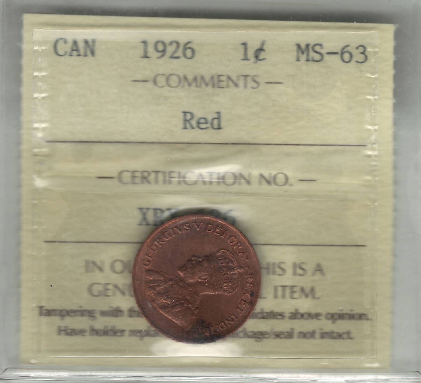Canada 1926 Small Cent ICCS MS63