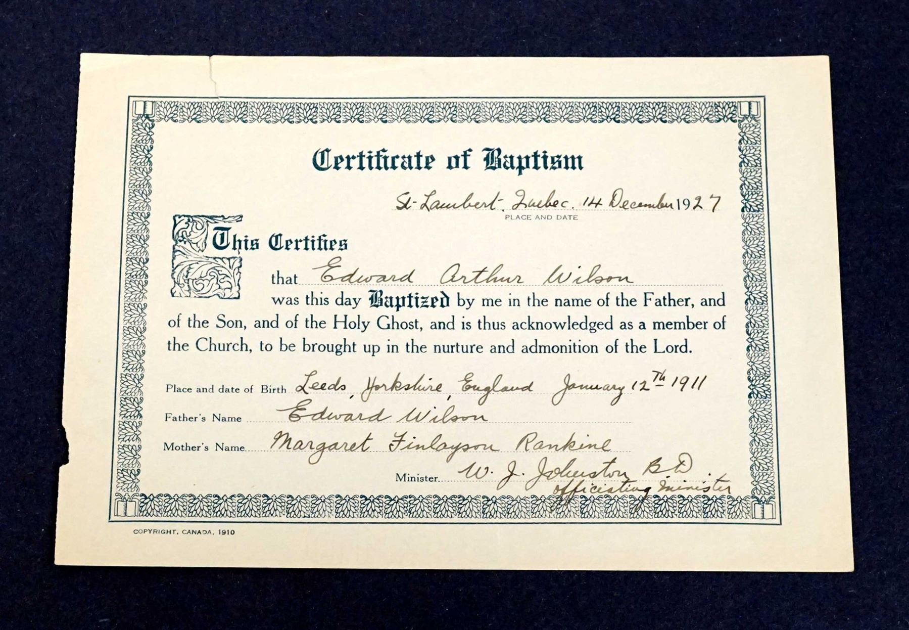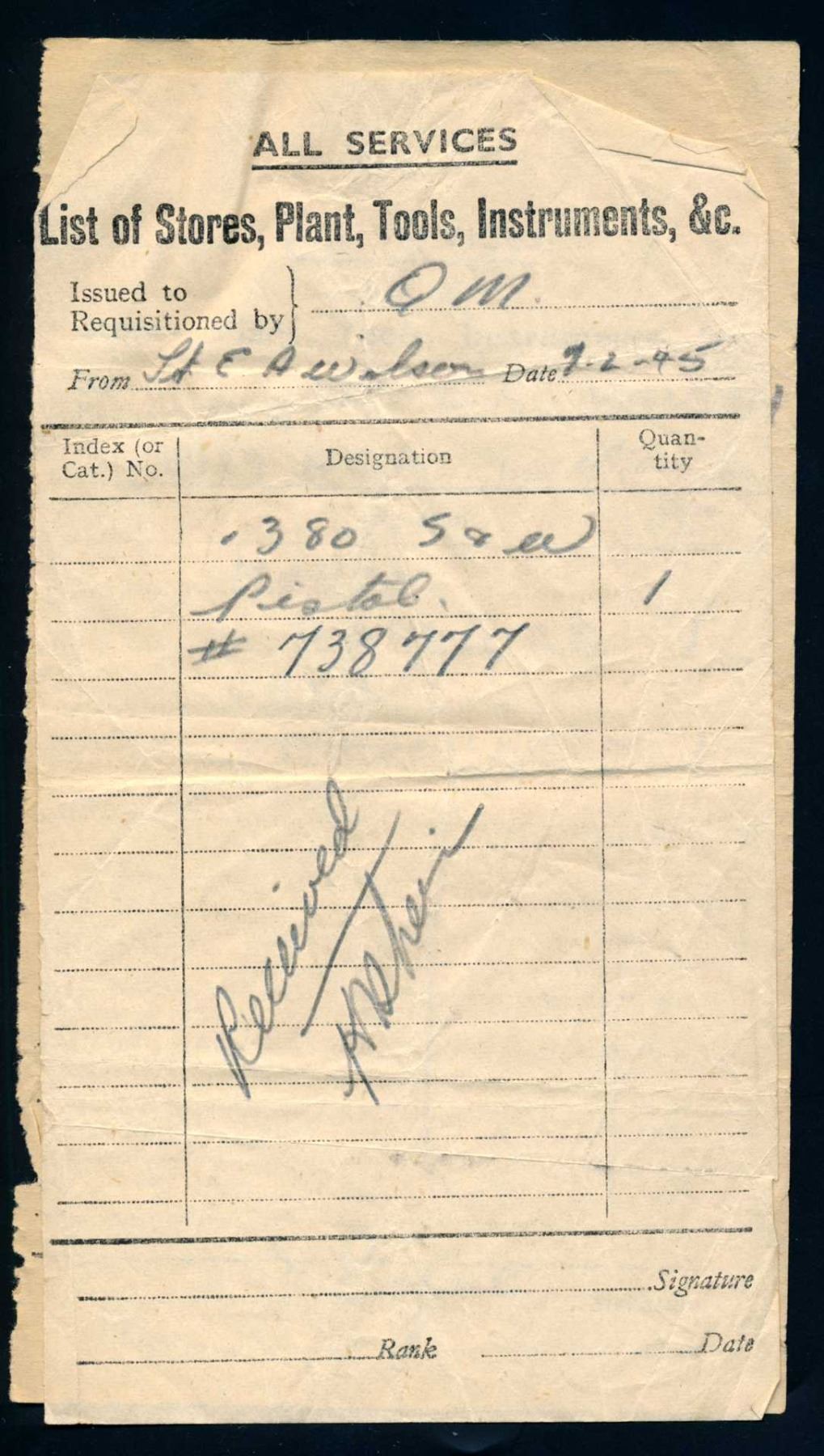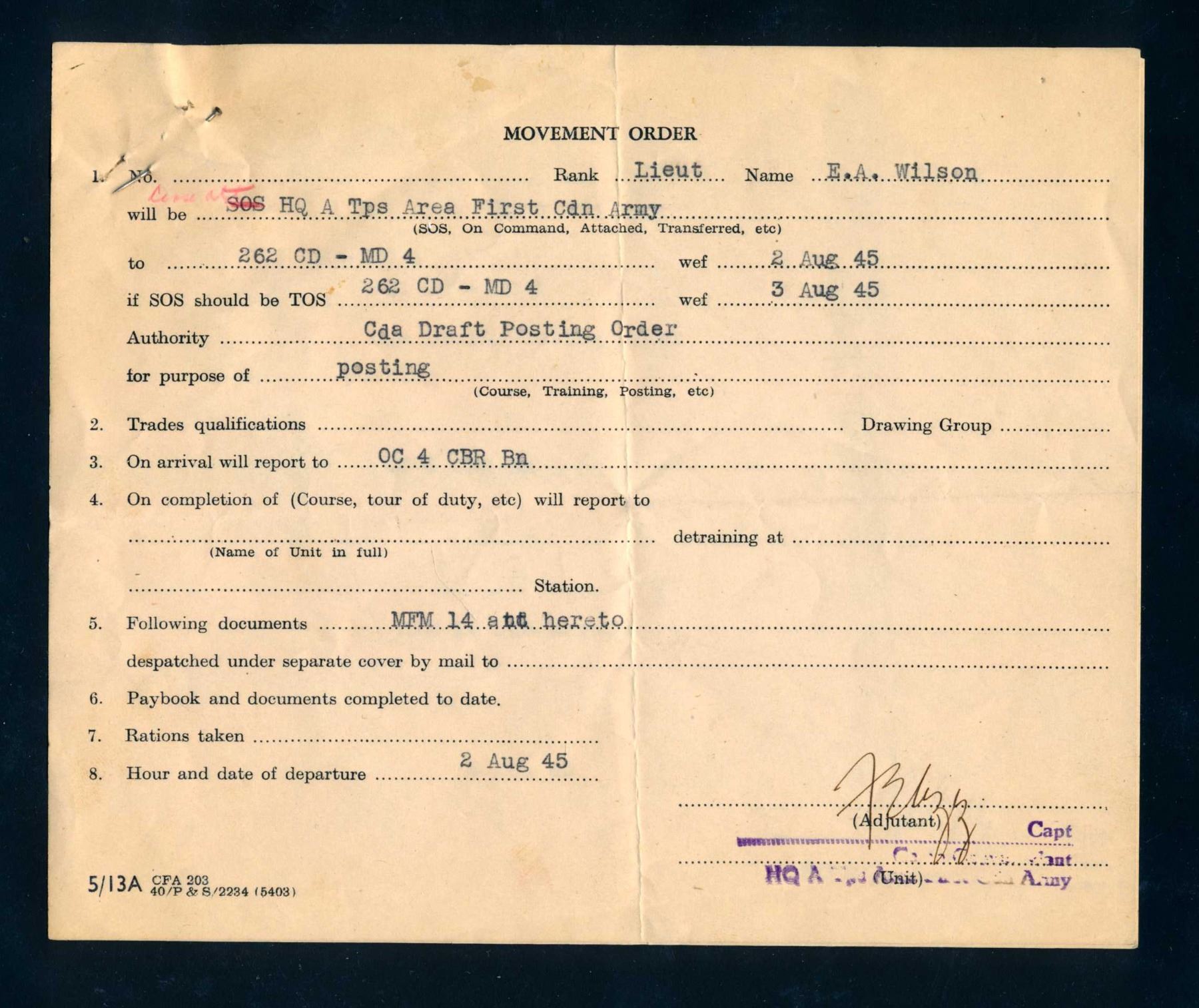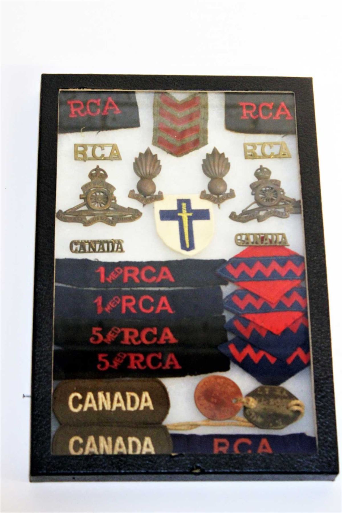 The personal collection of Lt. E.A. Wilson, R.C.A. which includes badges, flashs, dog-tags, educational certificates, military documents, correspondance and newspaper clippings giving an insight to that time. Should be viewed