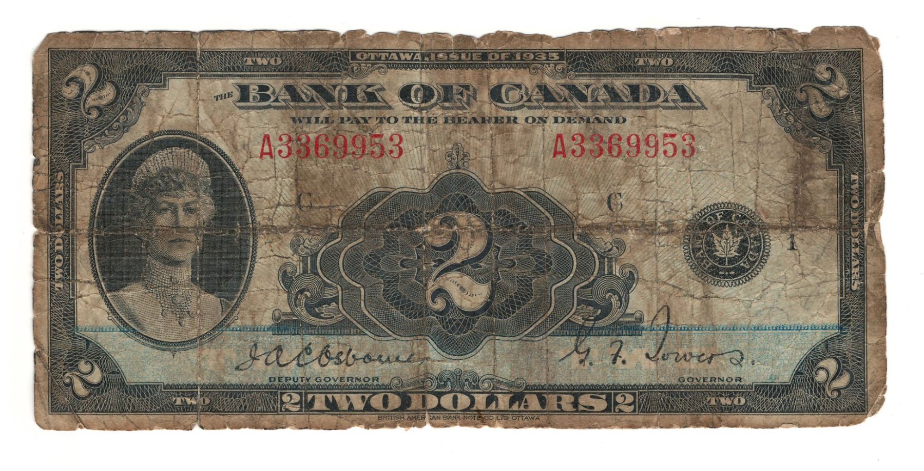 Canada 1935 $2 English Banknote BC-3 G