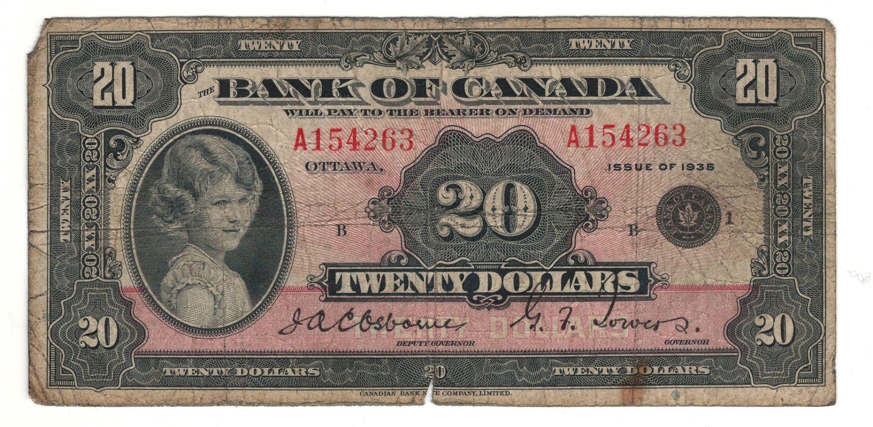 Canada 1935 $20 English Banknote Small Seal BC-9b VG Corner Missing.