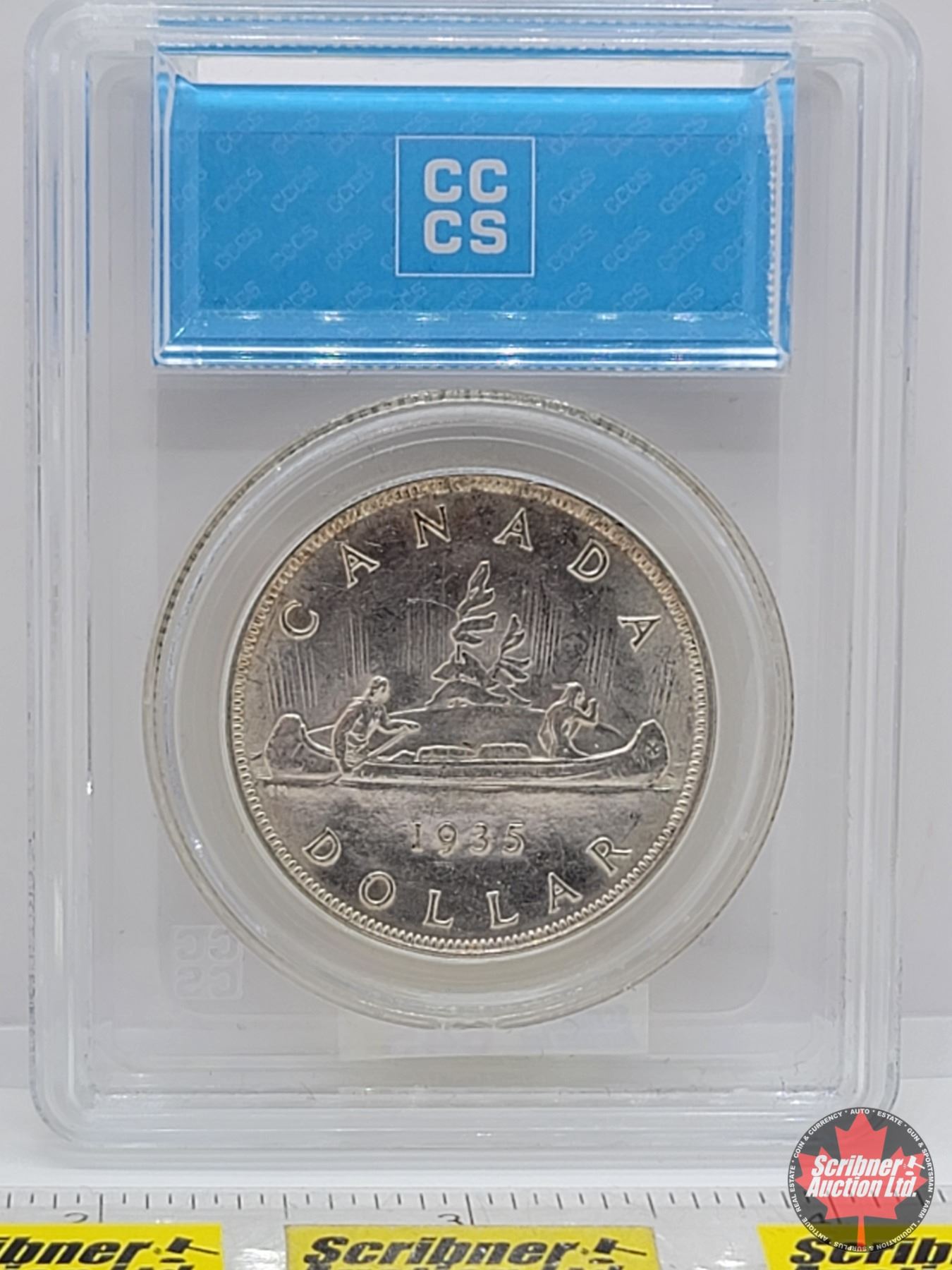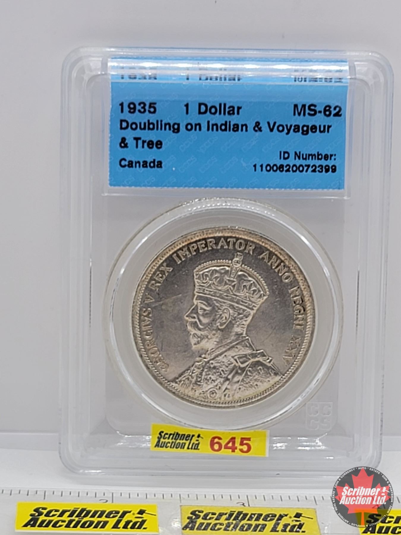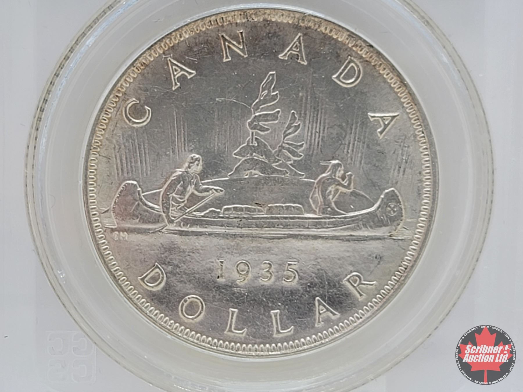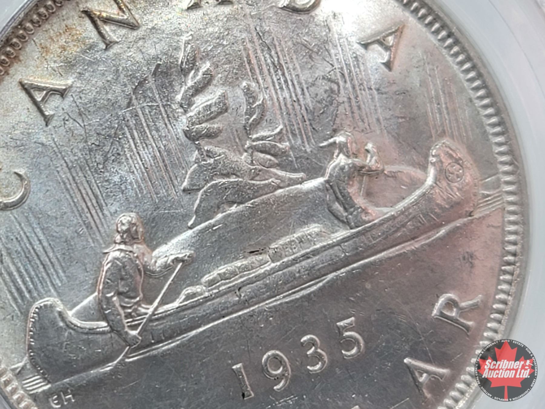 Canada 1935 Dollar "Doubling on Indian & Voyageur & Tree"(CCCS Certified : MS-62) (SEE PICS!)