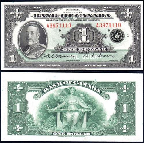 Canada 1935 One Dollar, BC-1, AU-Unc