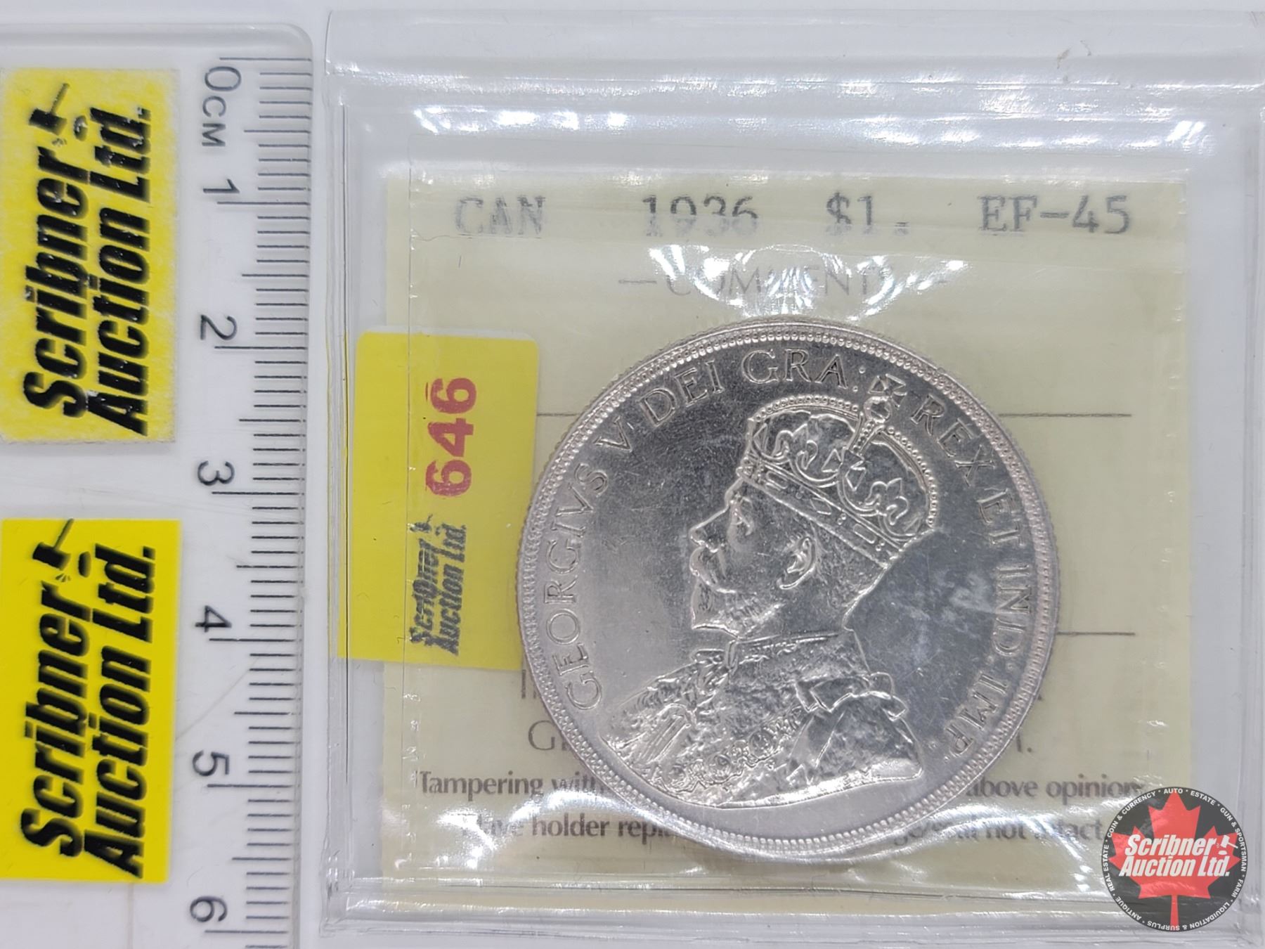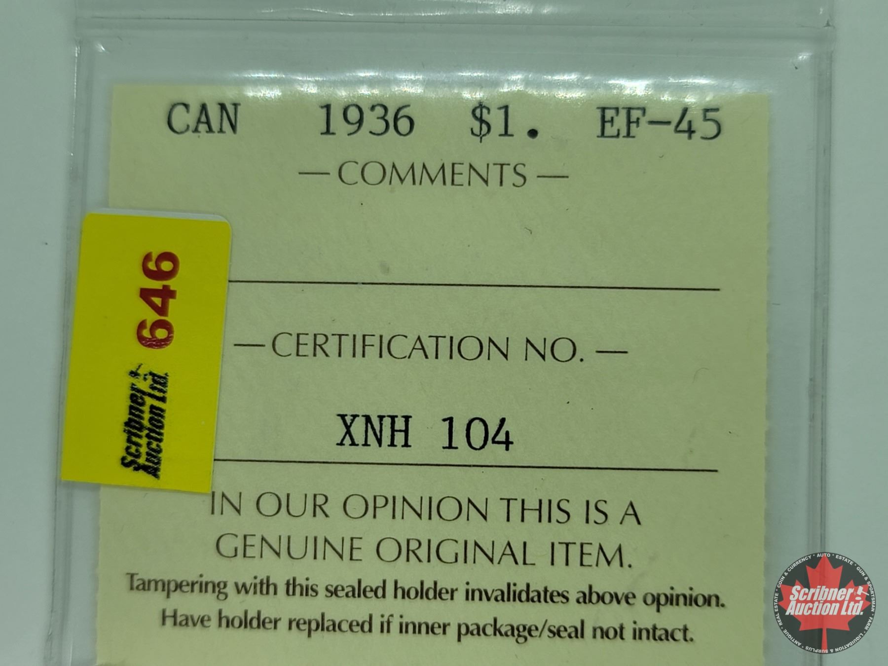 Canada 1936 Dollar (CCCS Certified : EF-45) (SEE PICS!)