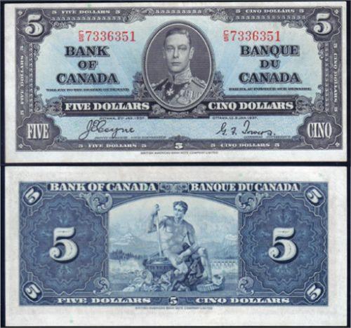 1937 Five Dollars Coyne-Towers, BC-23c Serial Number C/S7336351, Certified PMG Choice Uncirculated 64, Exceptional Paper Quality. It is a bit off-centre toward the top and the right