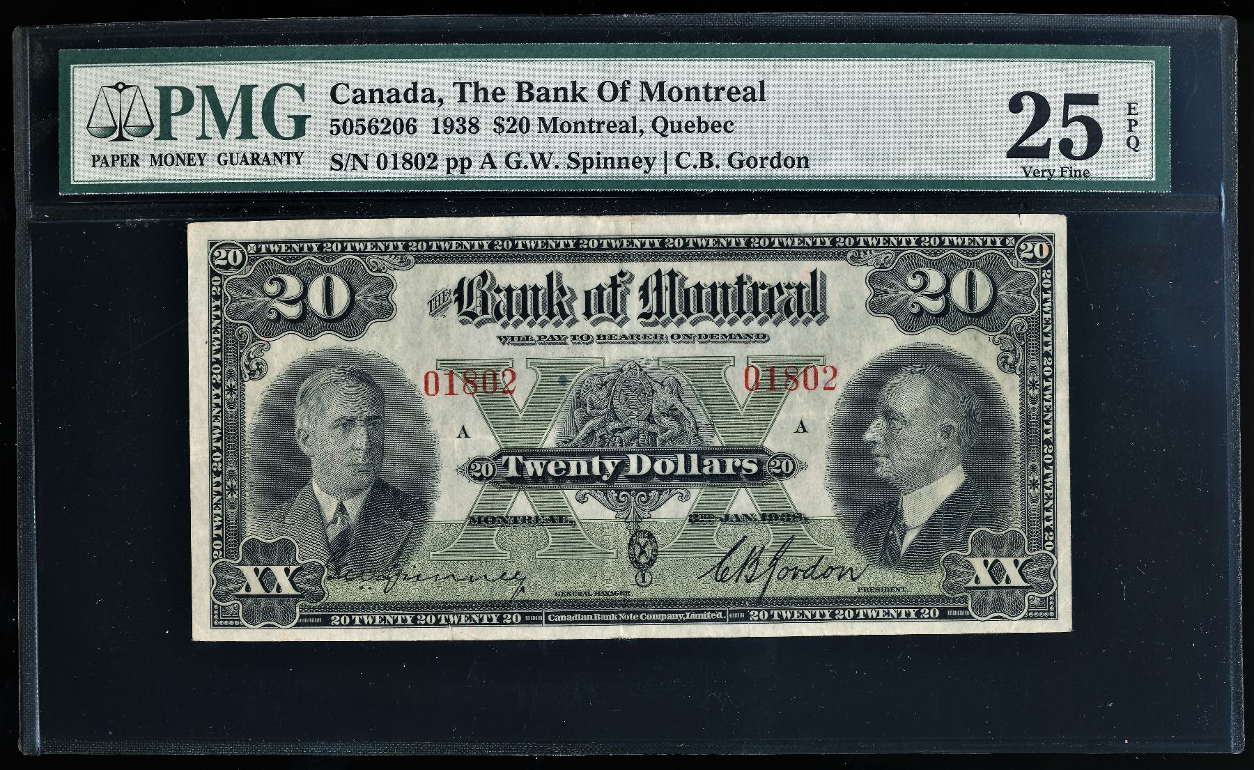 Canada 1938 The Bank of Montreal $20 Note PMG VF25. A beautiful note in Very Fine Condition. Please see photos to appreciate conditon!