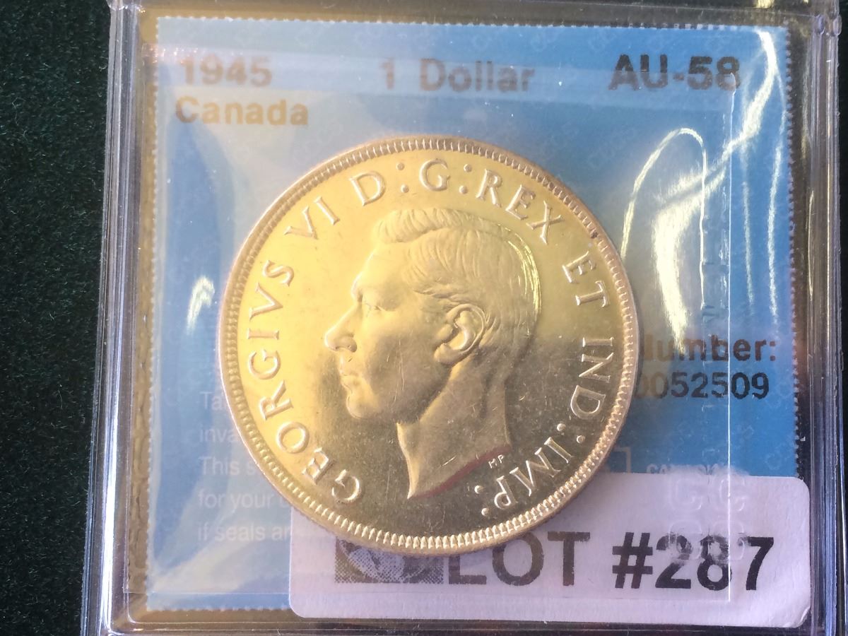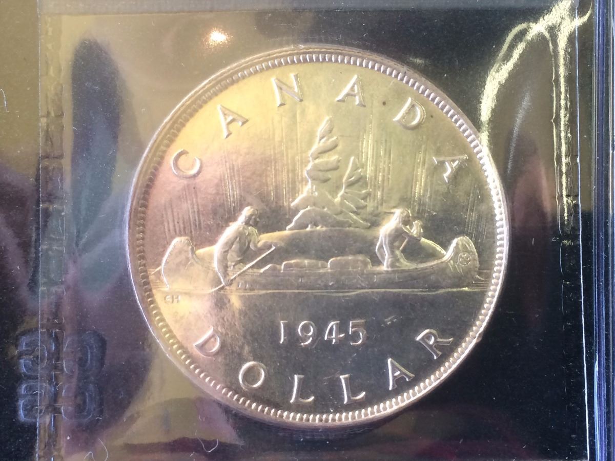 Canada 1945 Silver Dollar MS-AU-58 ICCS