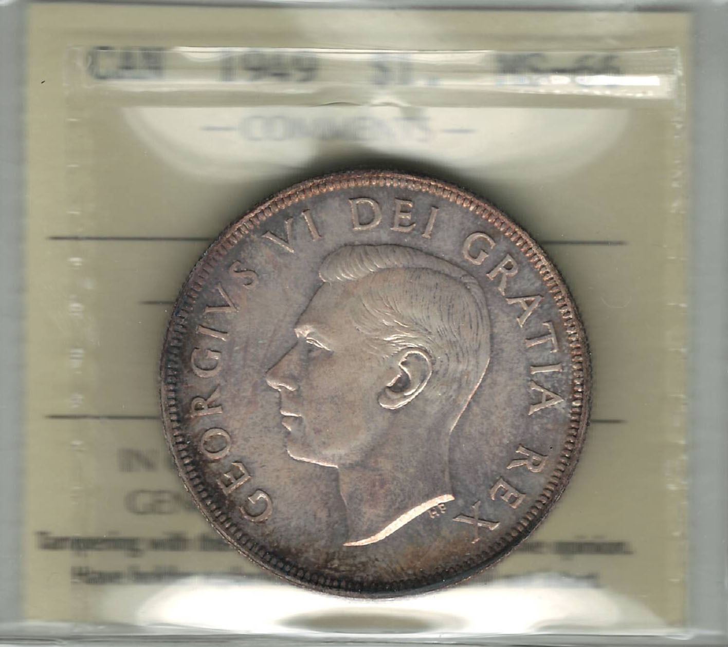 Canada 1949 Silver Dollar ICCS MS66 Toned