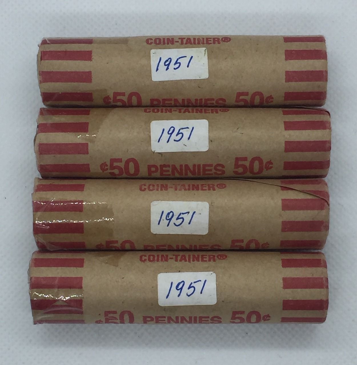 Canada 1951 Circulated Penny Rolls - 4 Rolls